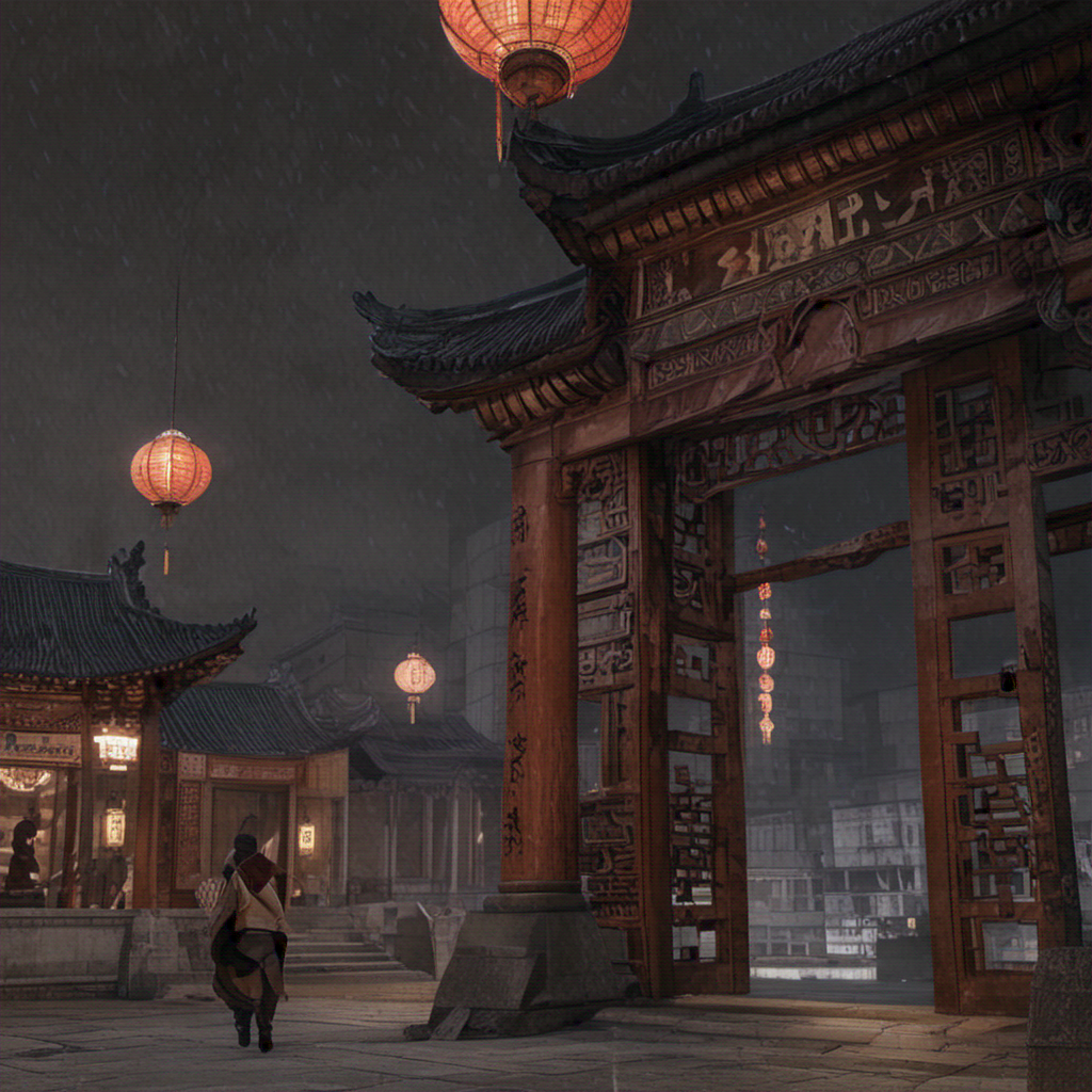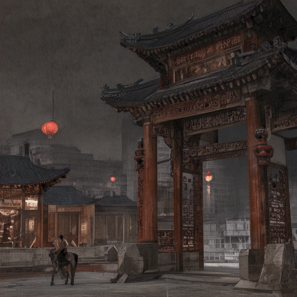 urban concrete jungle, skyscrapers, smoggy air→magical fantasy forest, bioluminescent plants, ethereal atmosphere