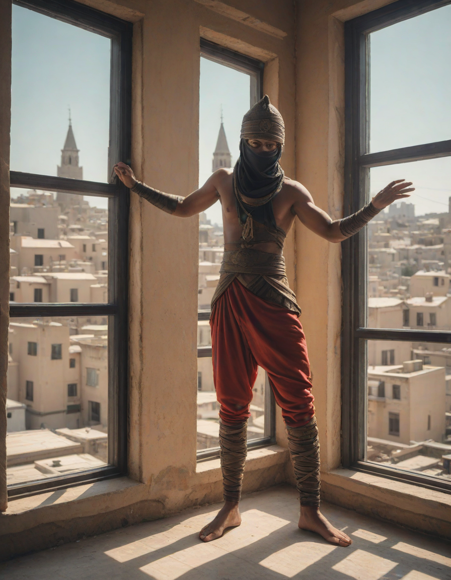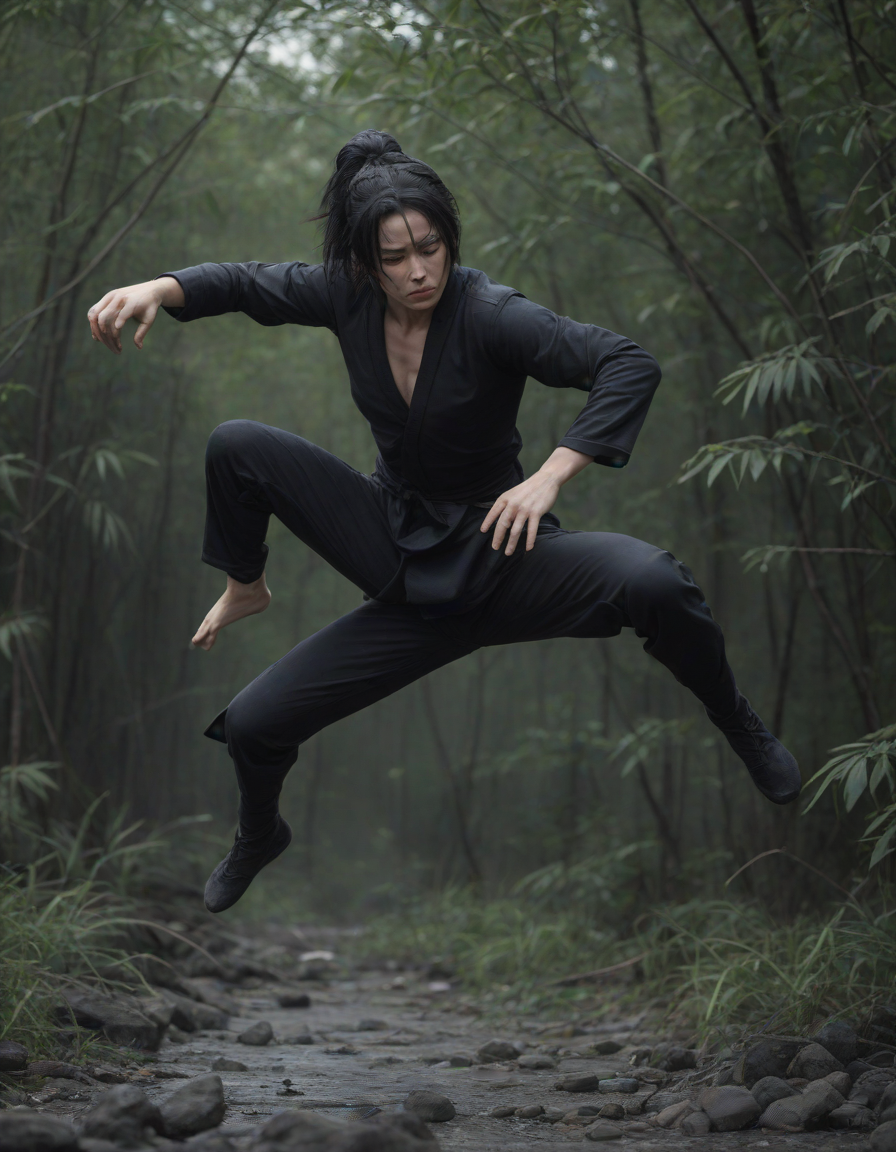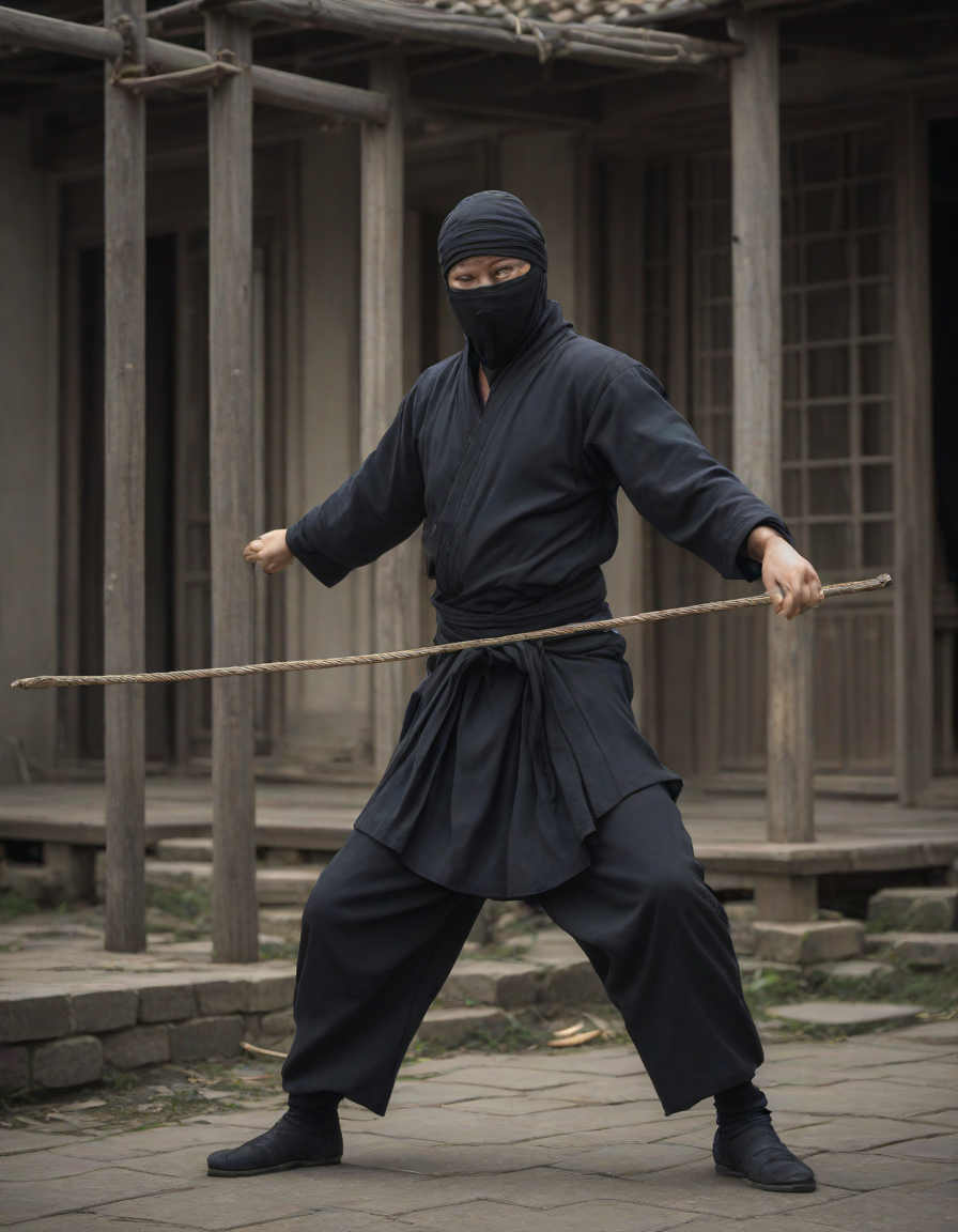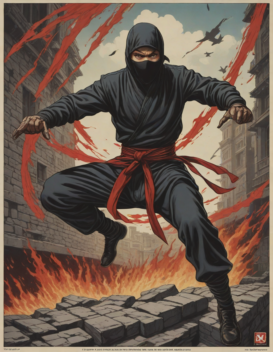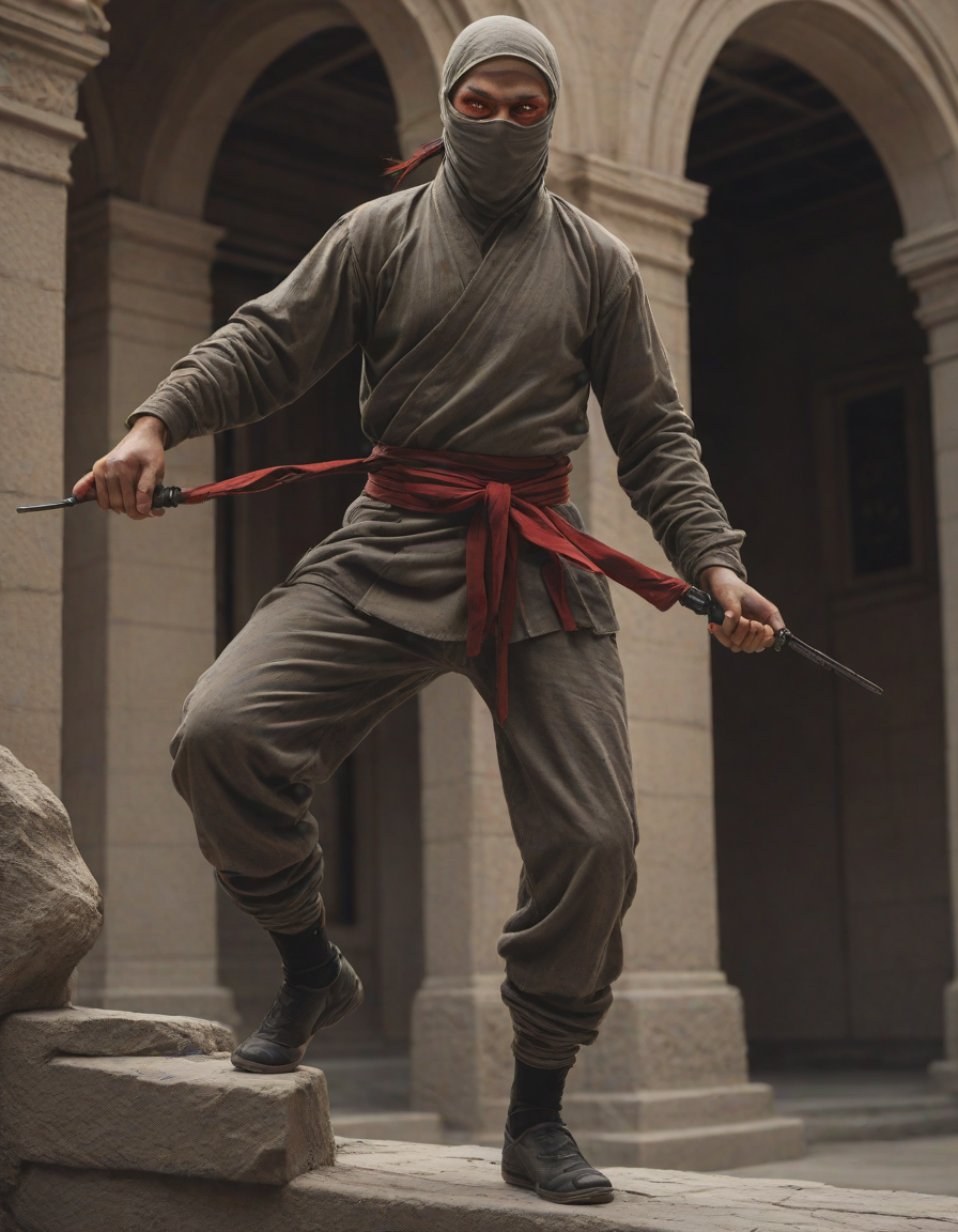 Ninja performing stealthy acrobatic move