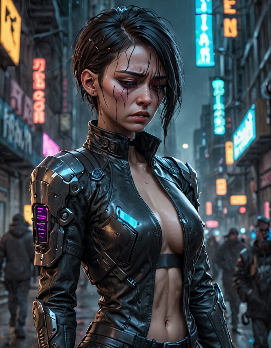 crying, cyberpunk hacker, surr... (3 loras merged)