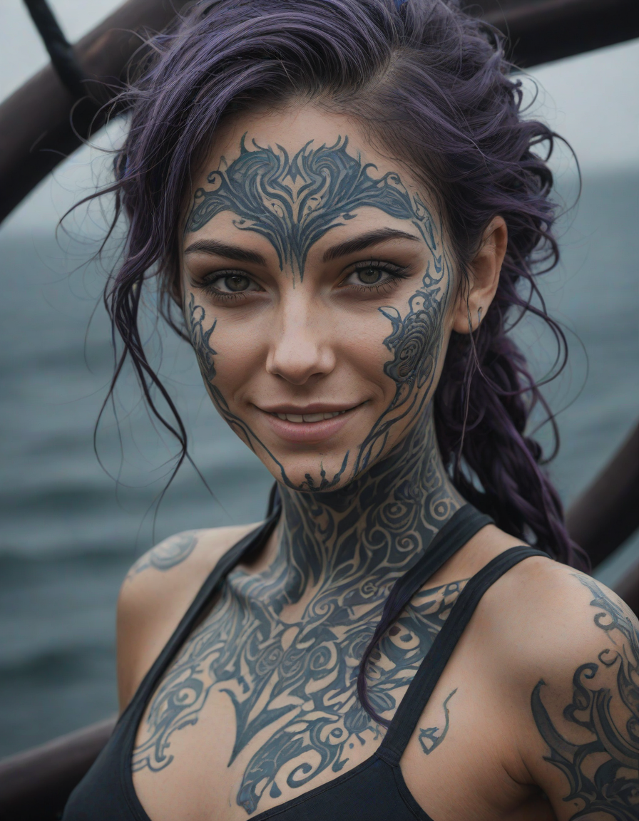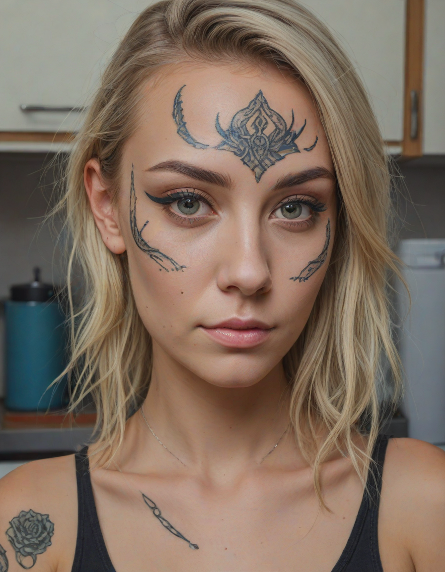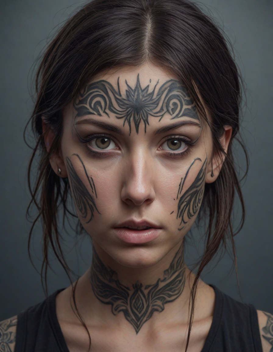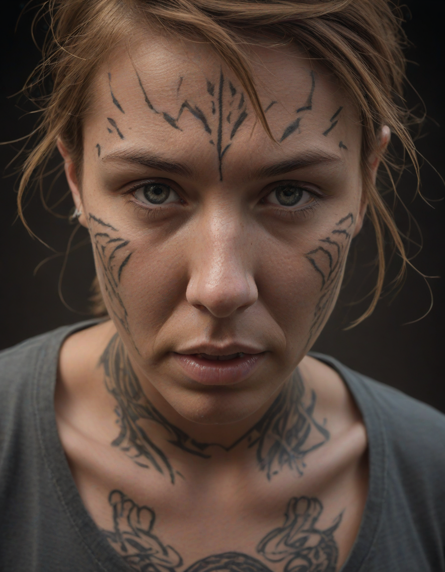 face tattoo, Grunting face, Ra... (5 loras merged)