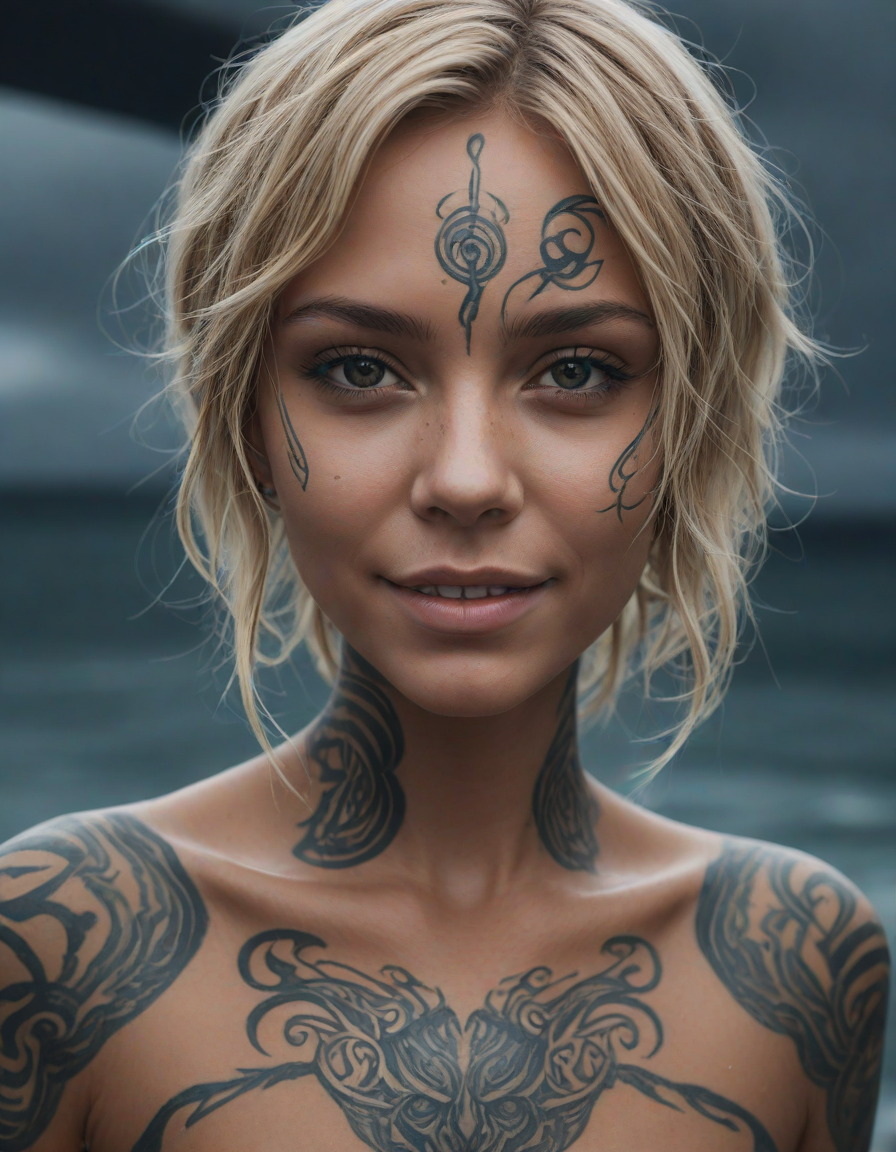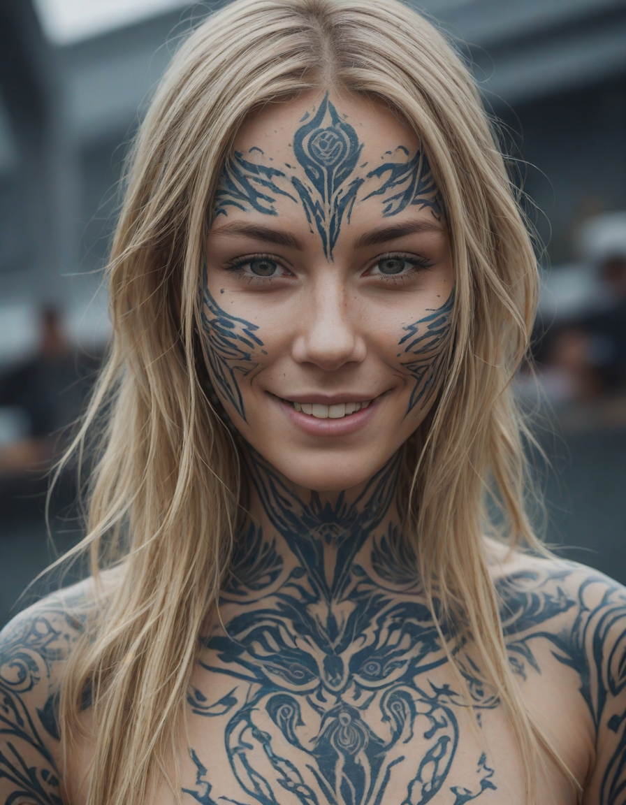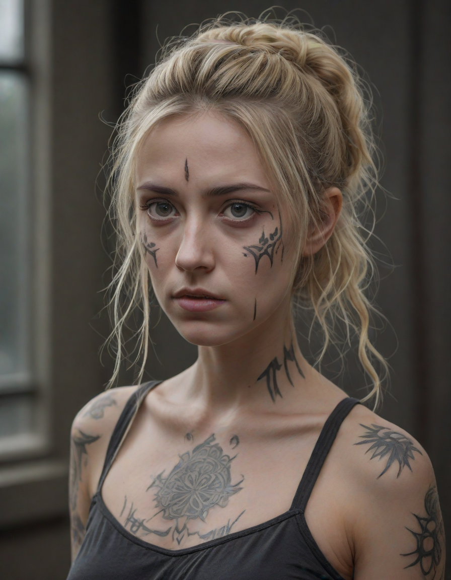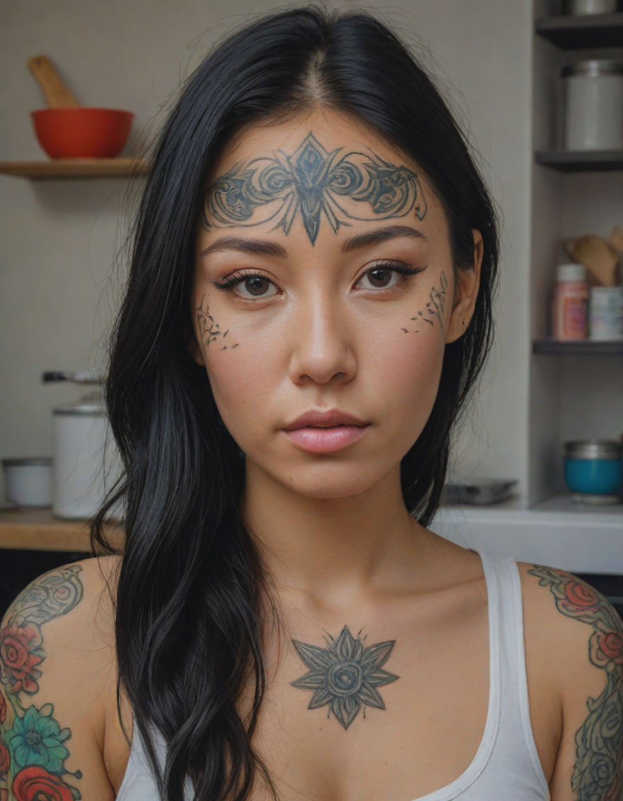 face tattoo, Grunting face, Ra... (5 loras merged)