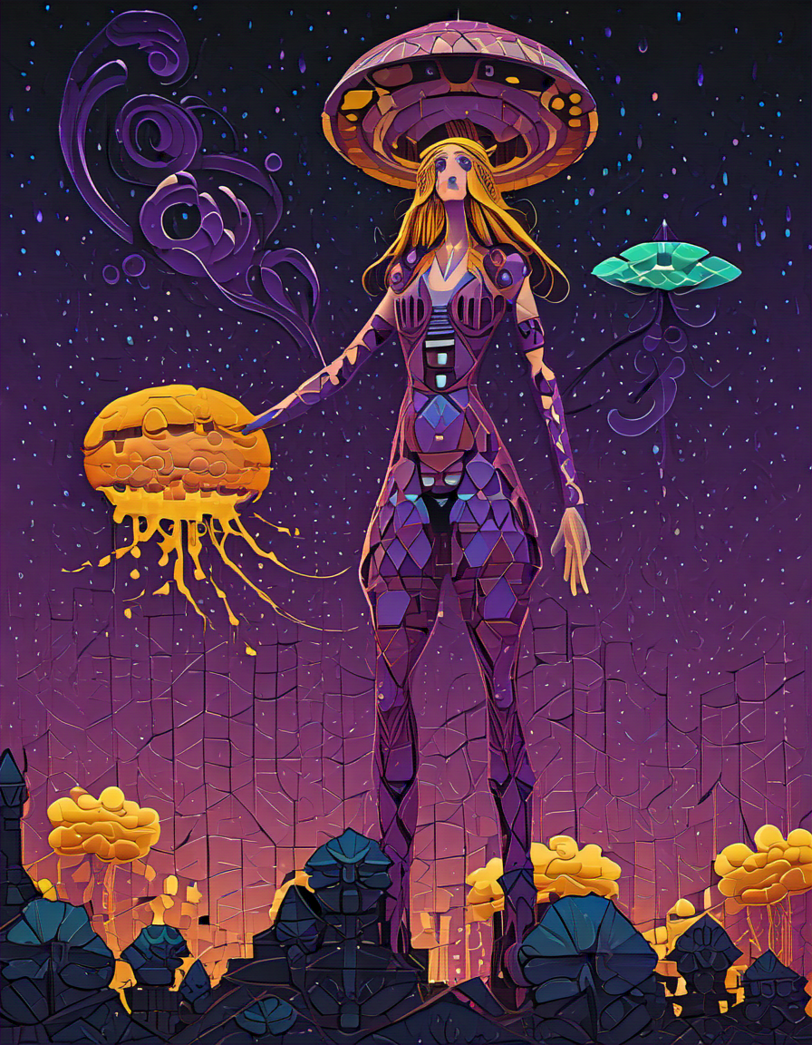 plain patterns, geometric shapes, simple motifs→whimsical swirling patterns, psychedelic designs