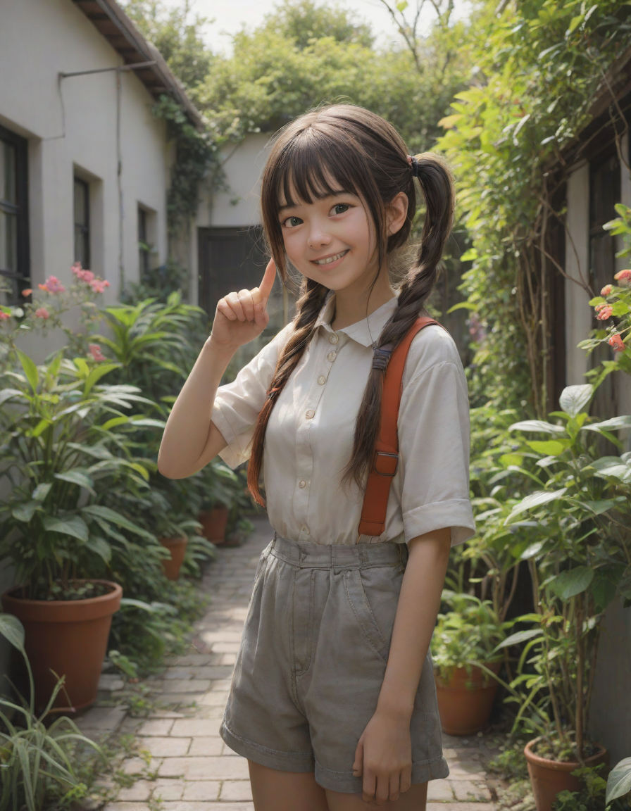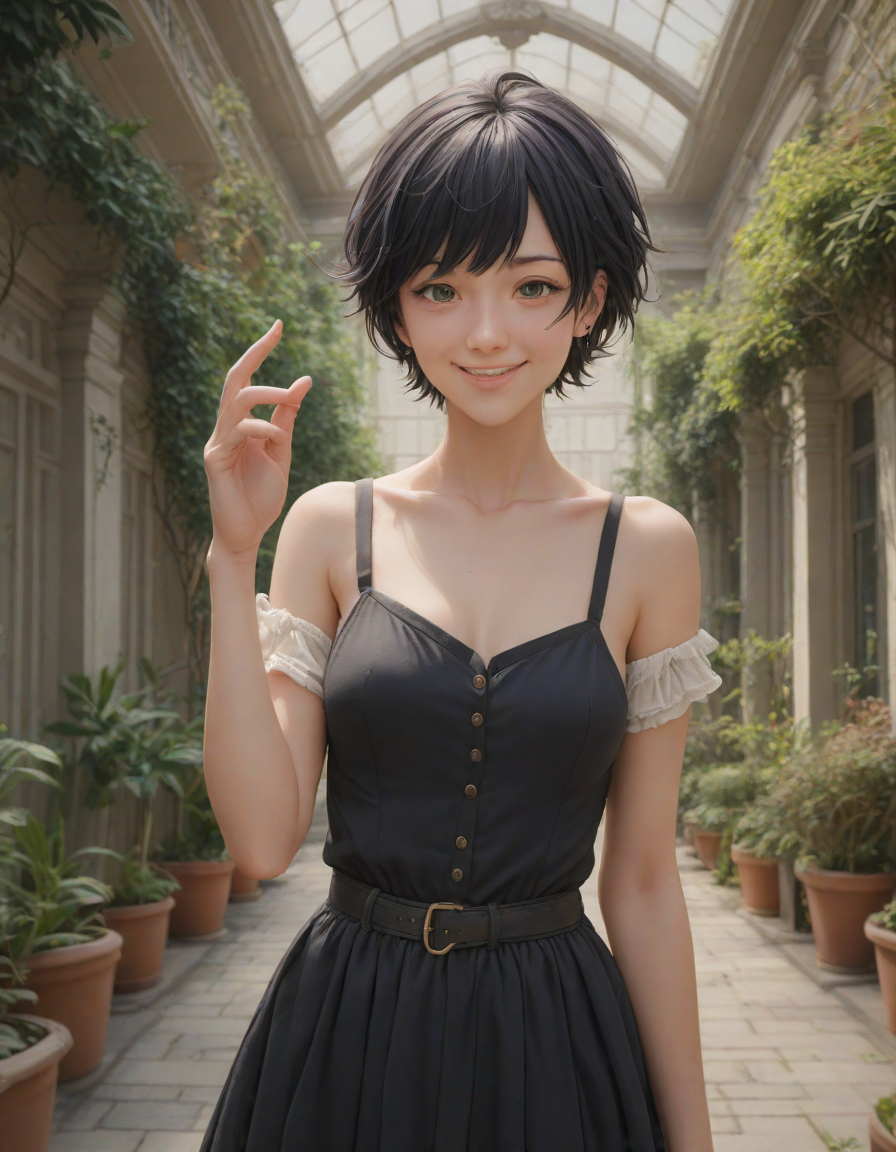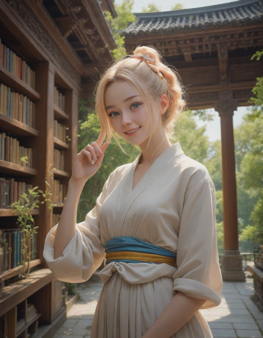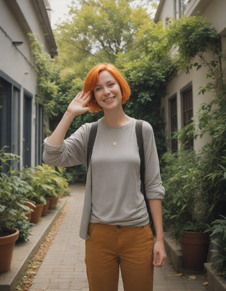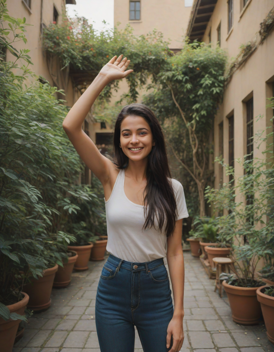 waving hello, hair up, HD 4k, ... (6 loras merged)