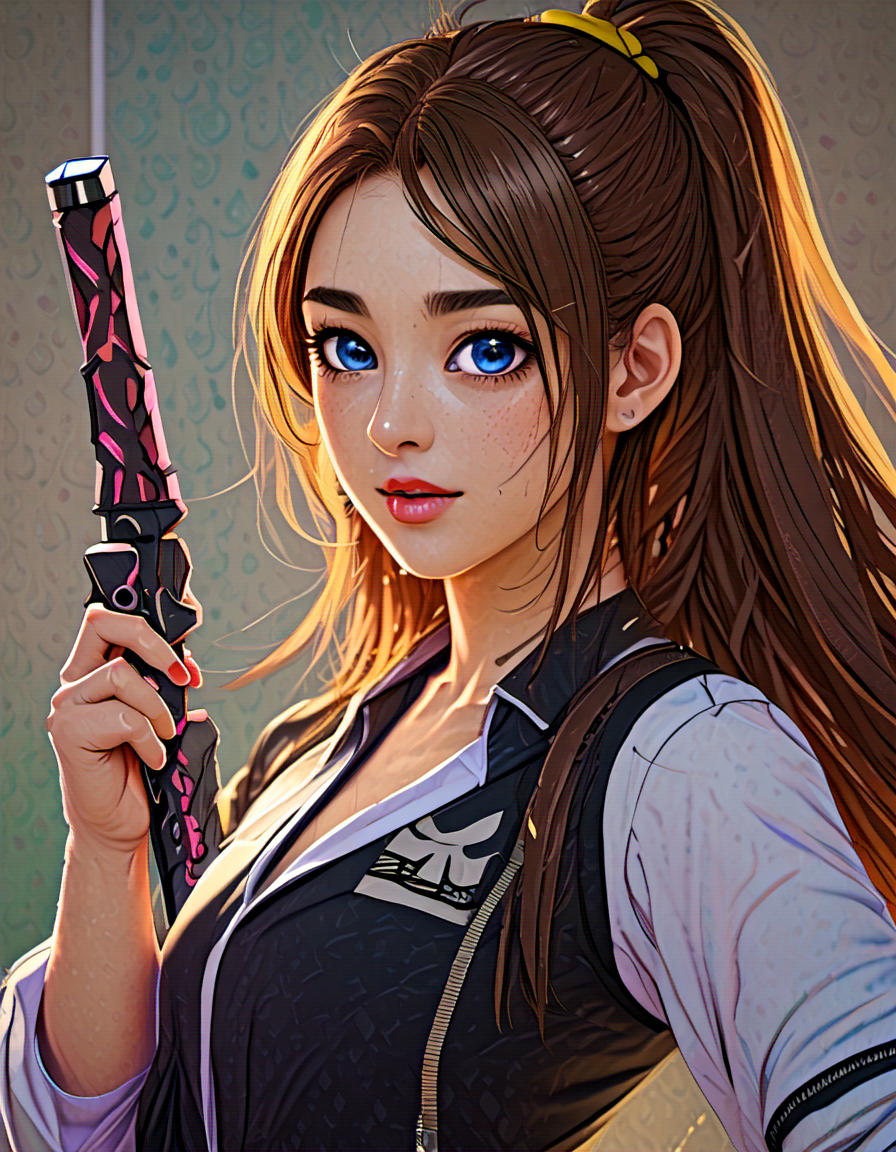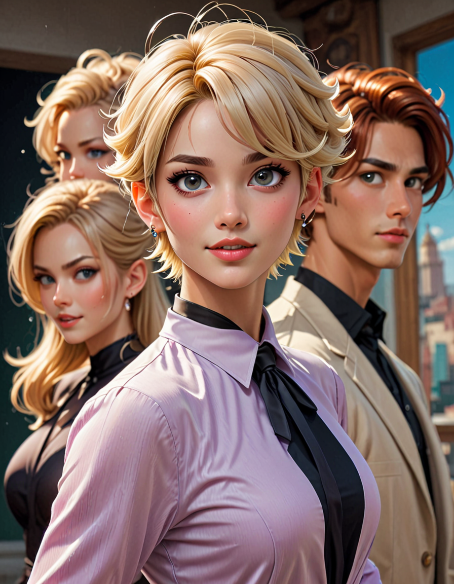attractive v2, blue shirt, Sur... (14 doras merged)