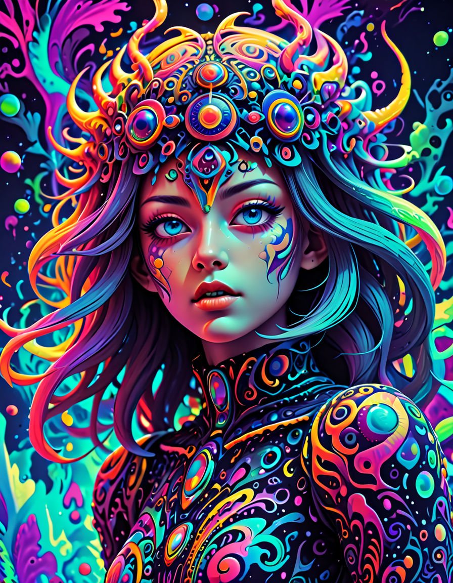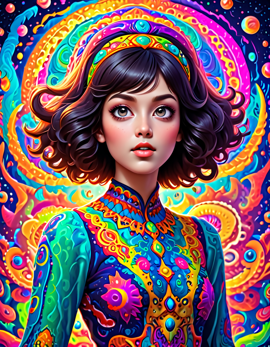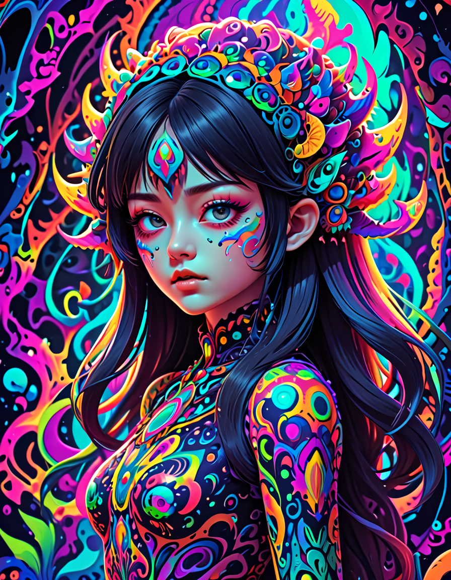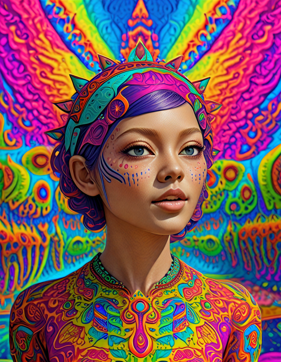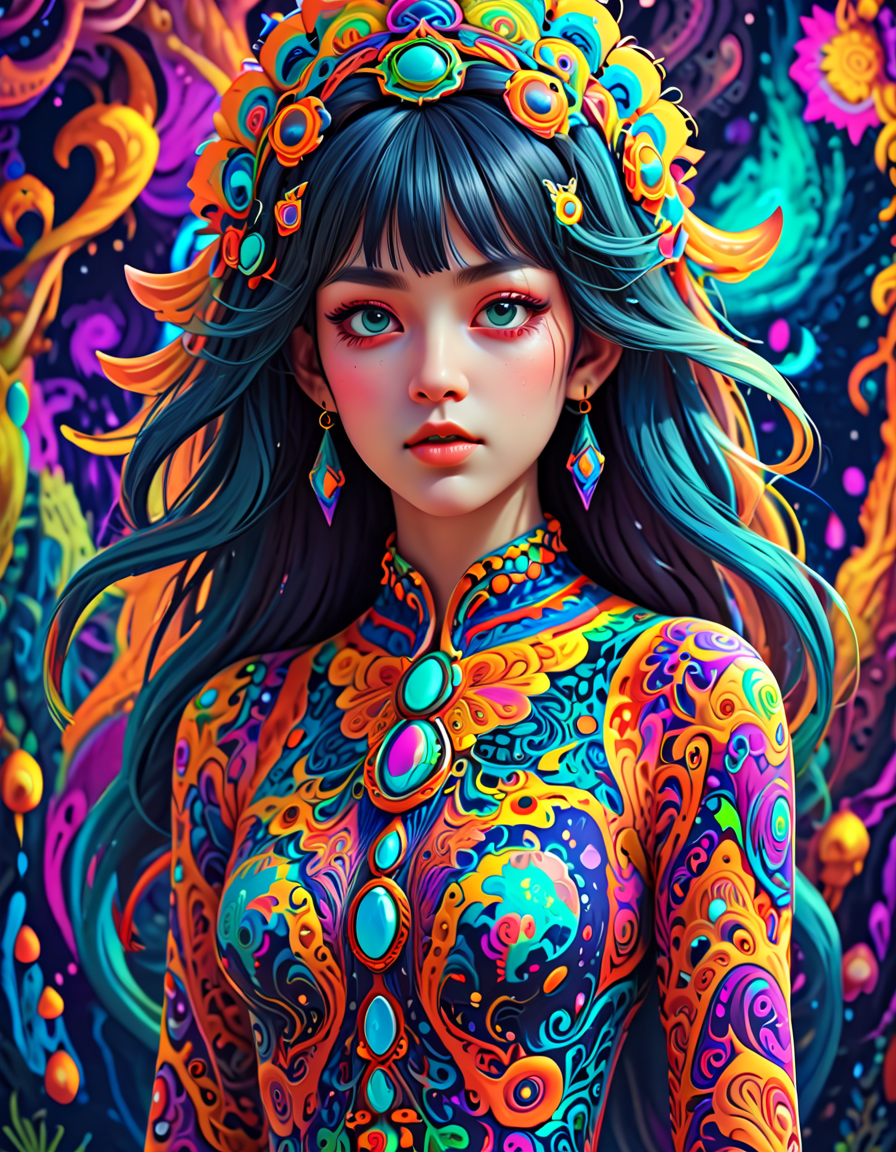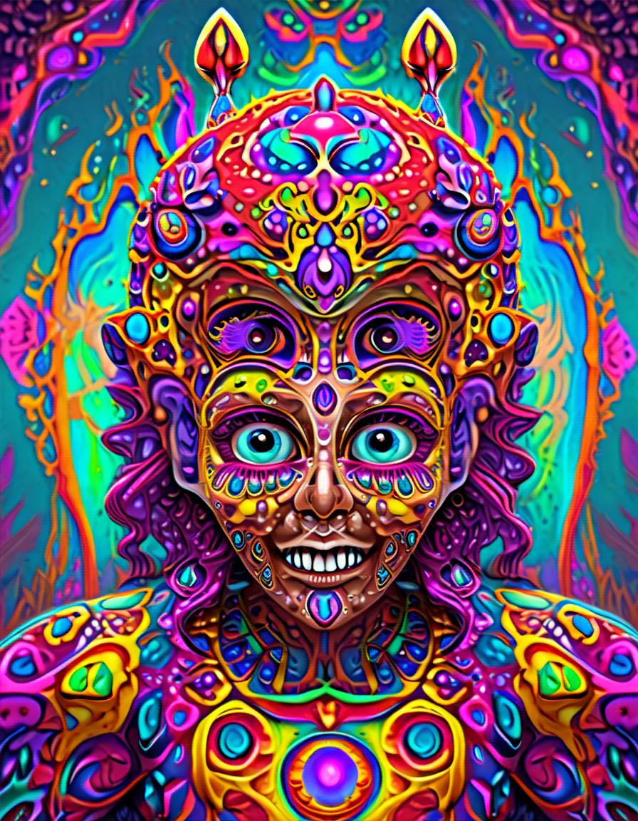 colorful psychedelic style, pe... (4 doras merged)