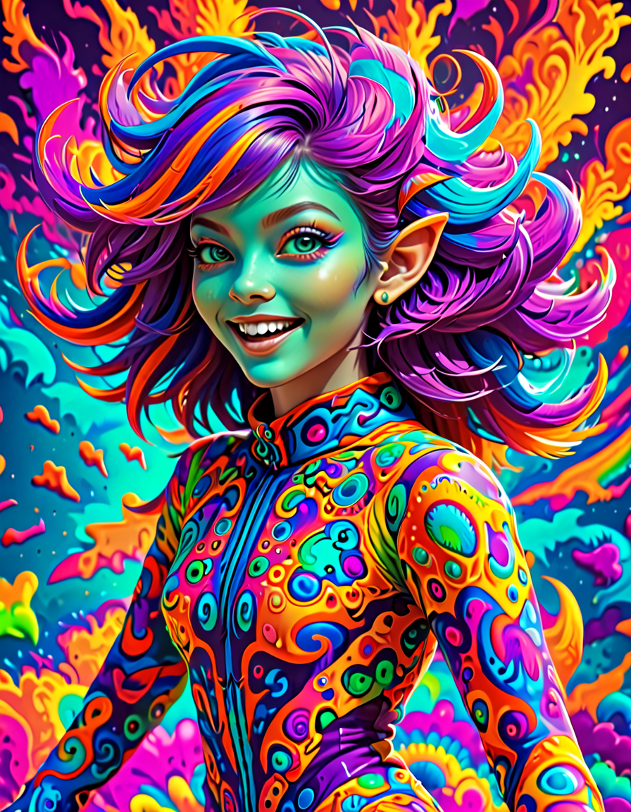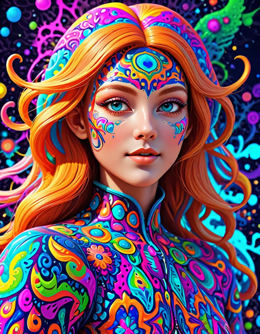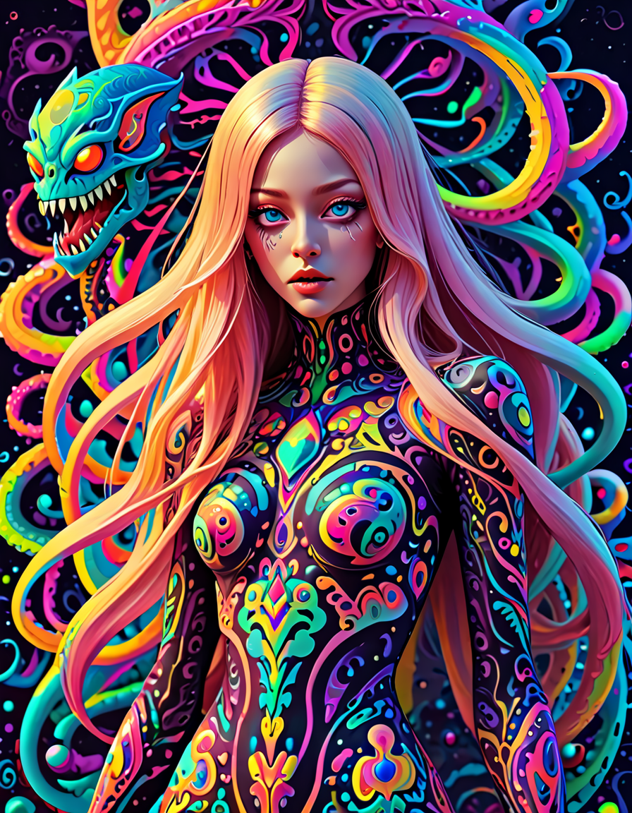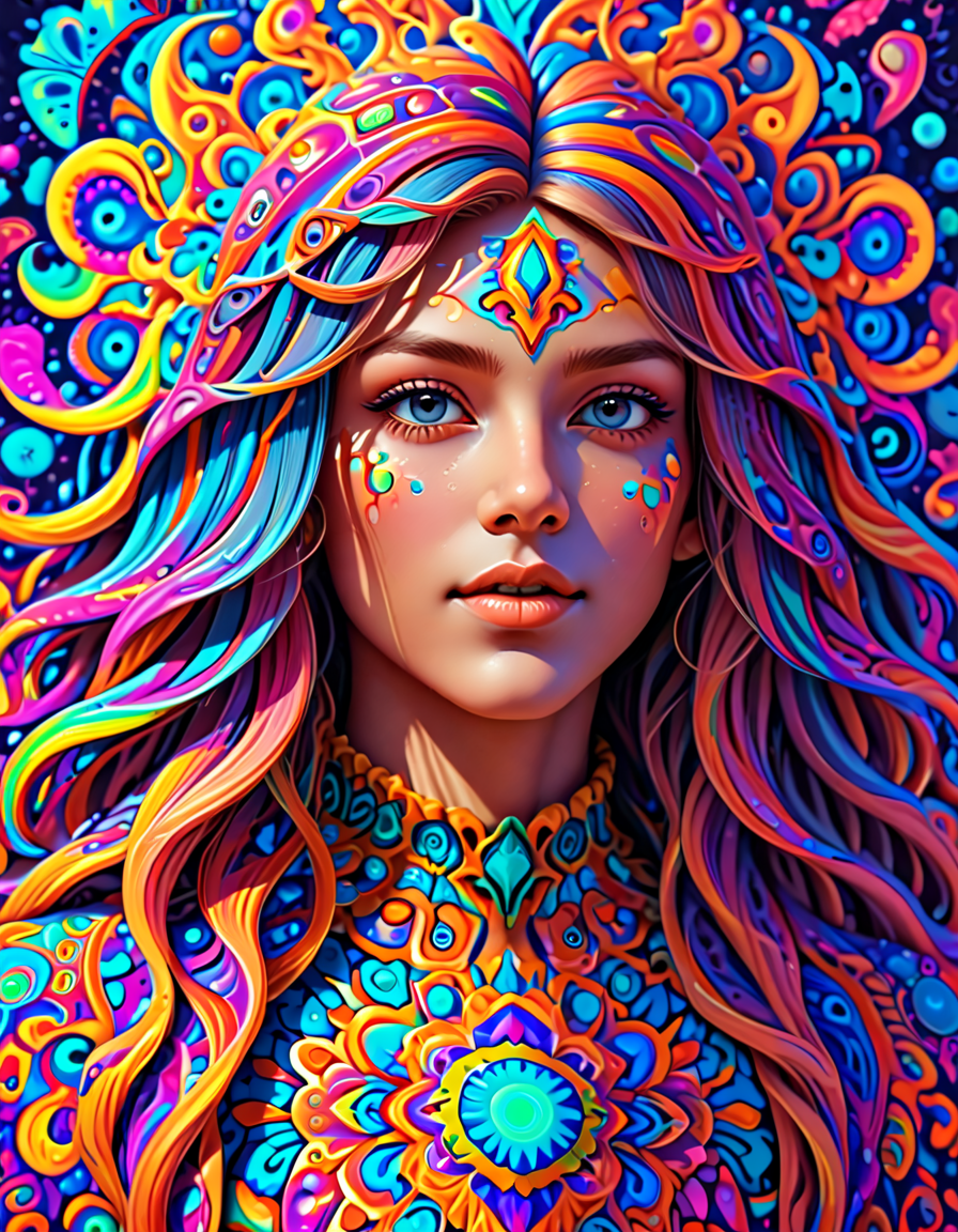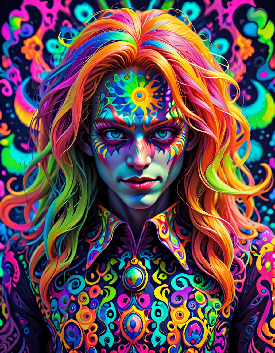colorful psychedelic style, pe... (4 doras merged)