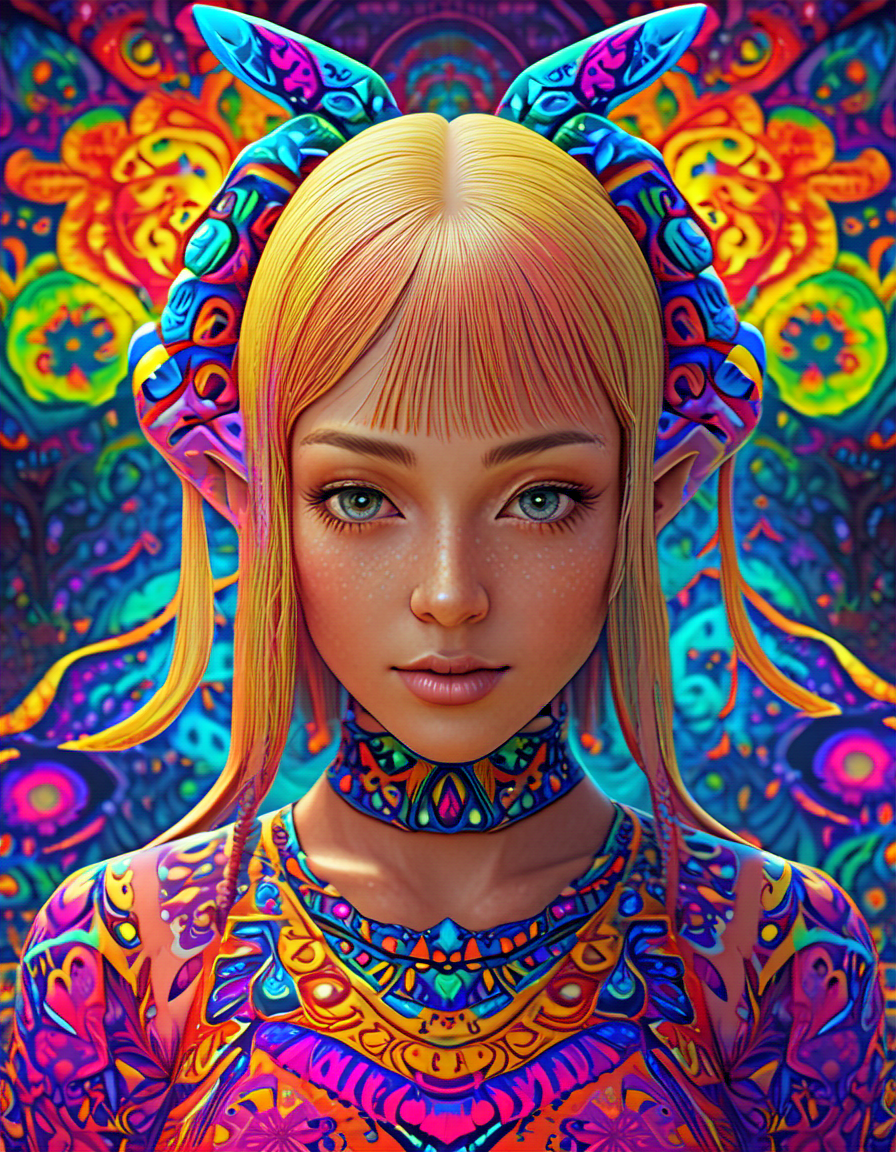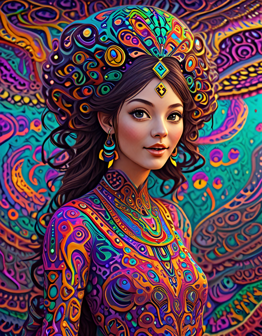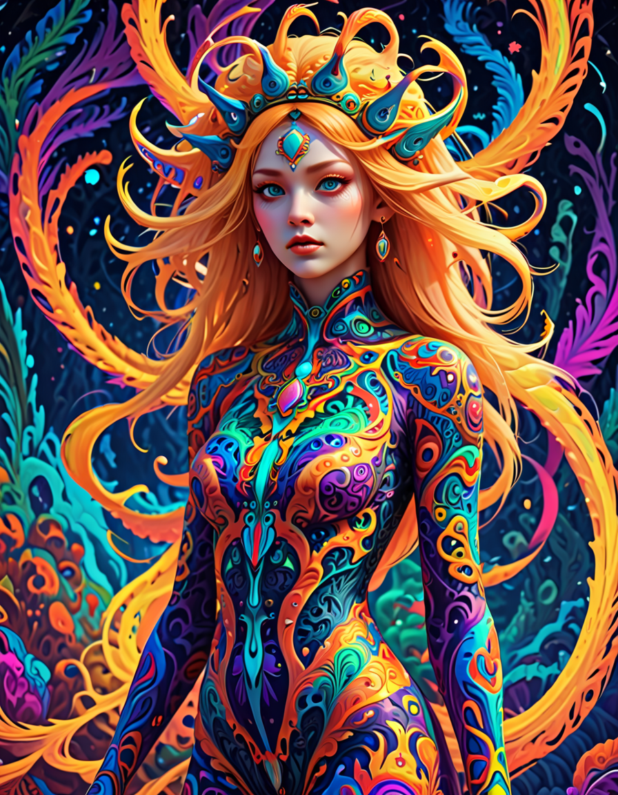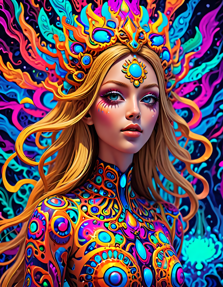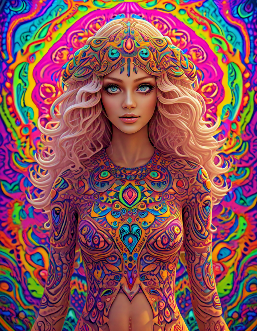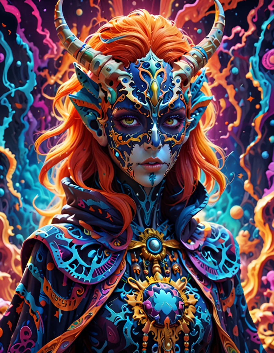 colorful psychedelic style, pe... (4 doras merged)