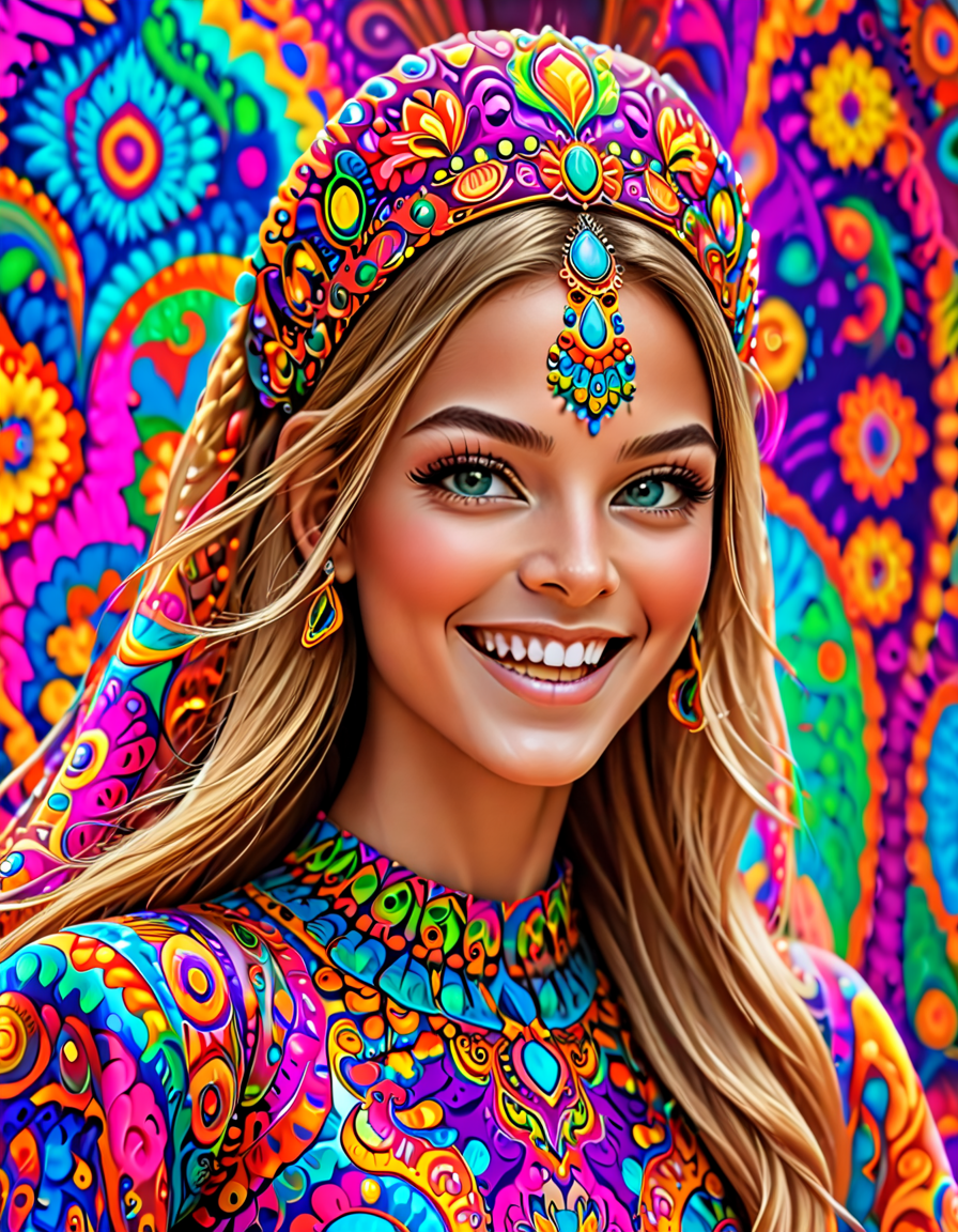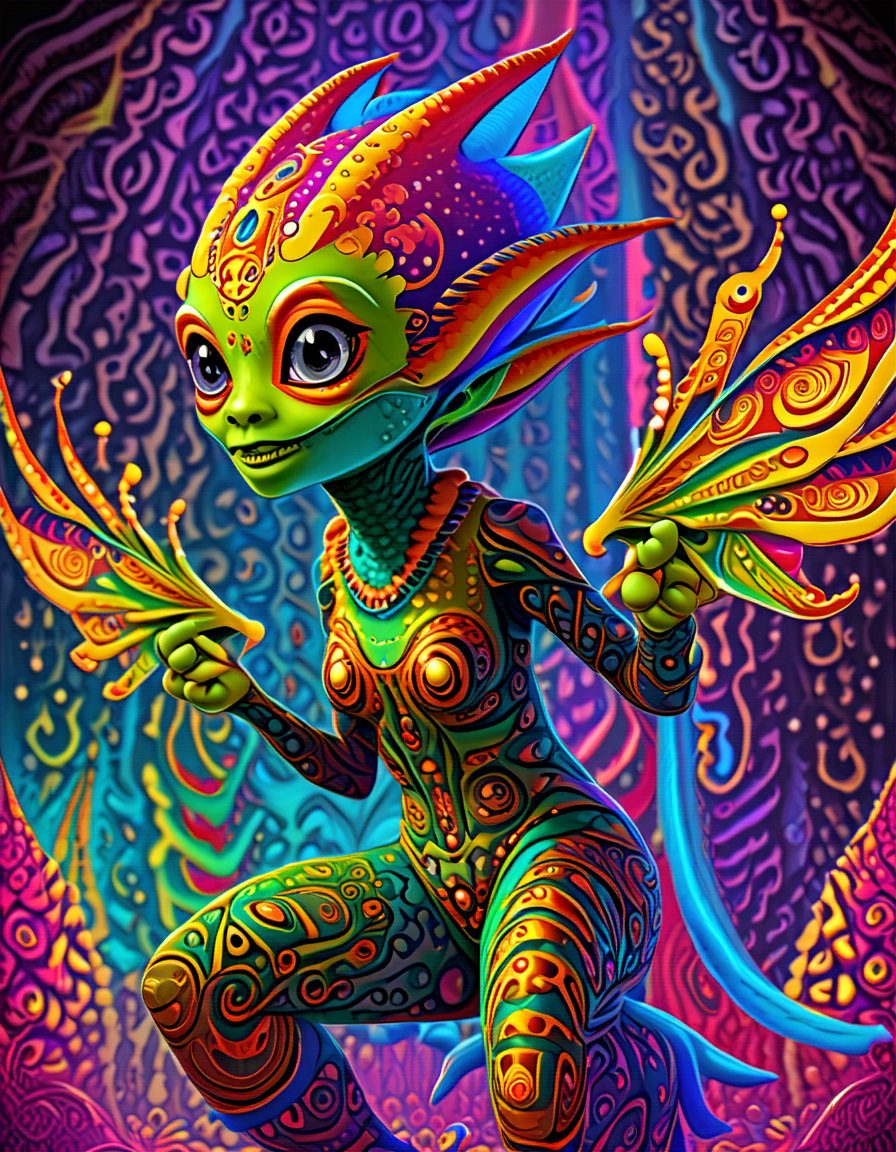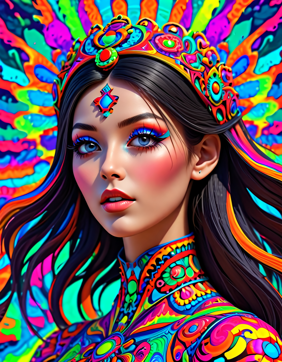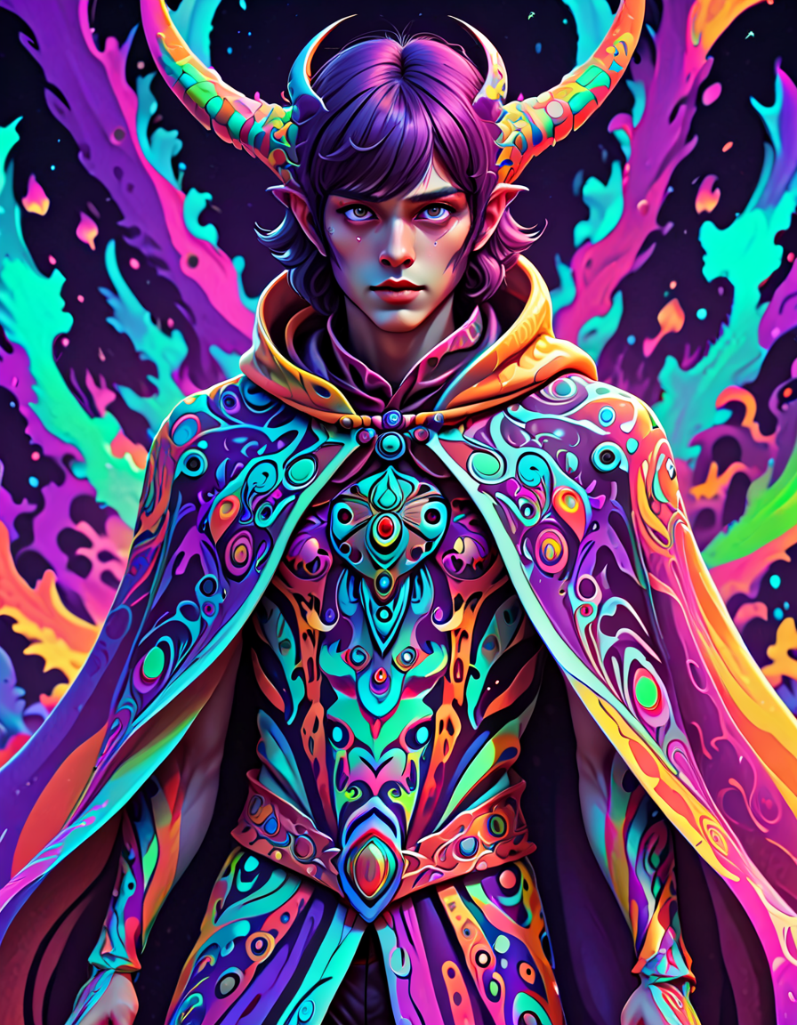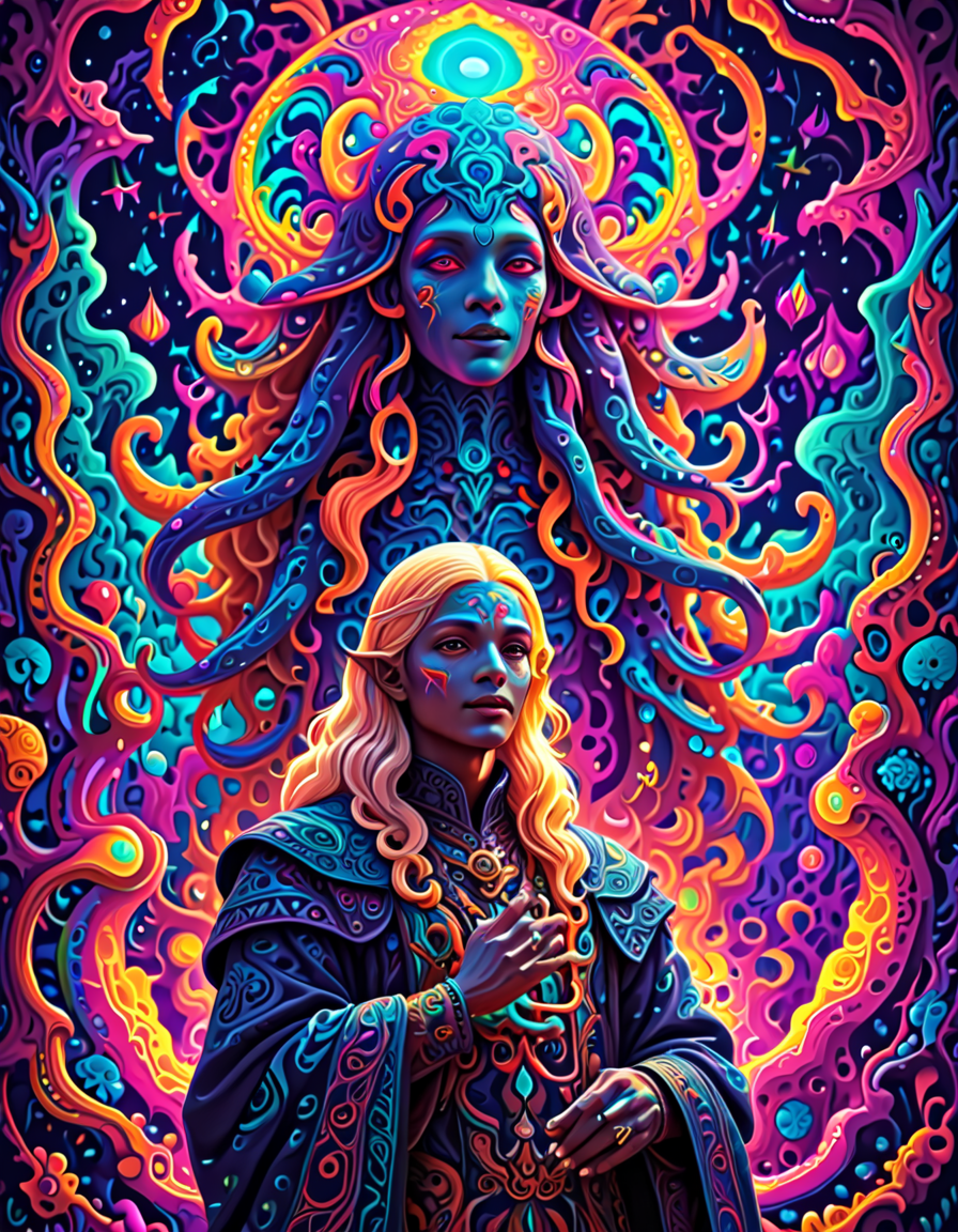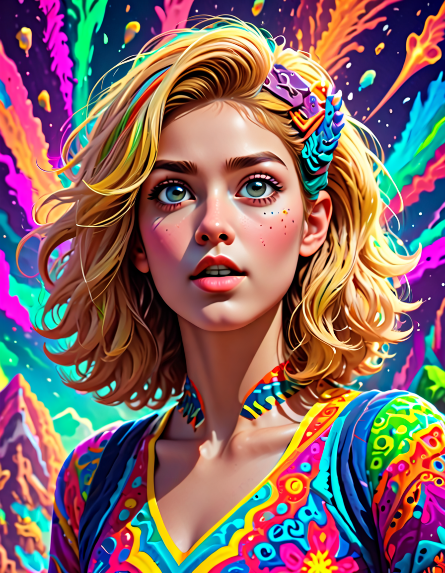 colorful psychedelic style, pe... (4 doras merged)