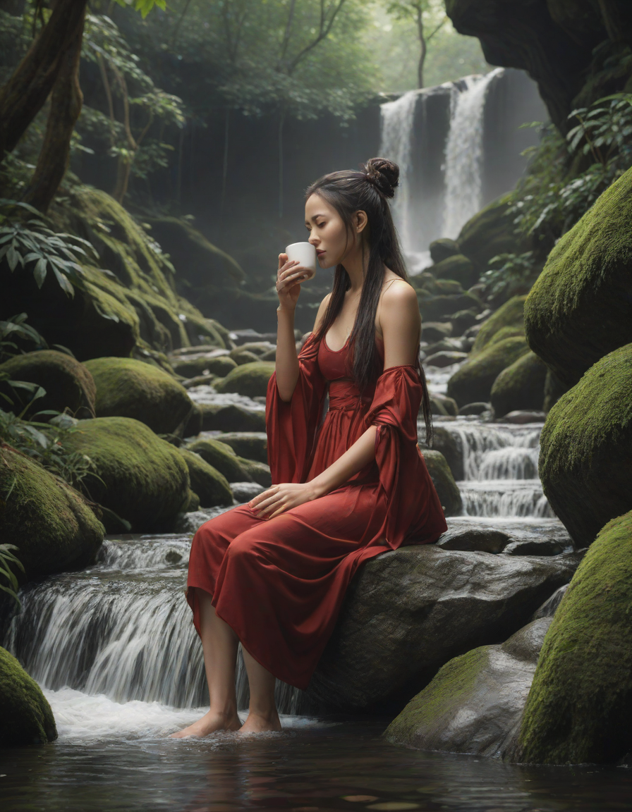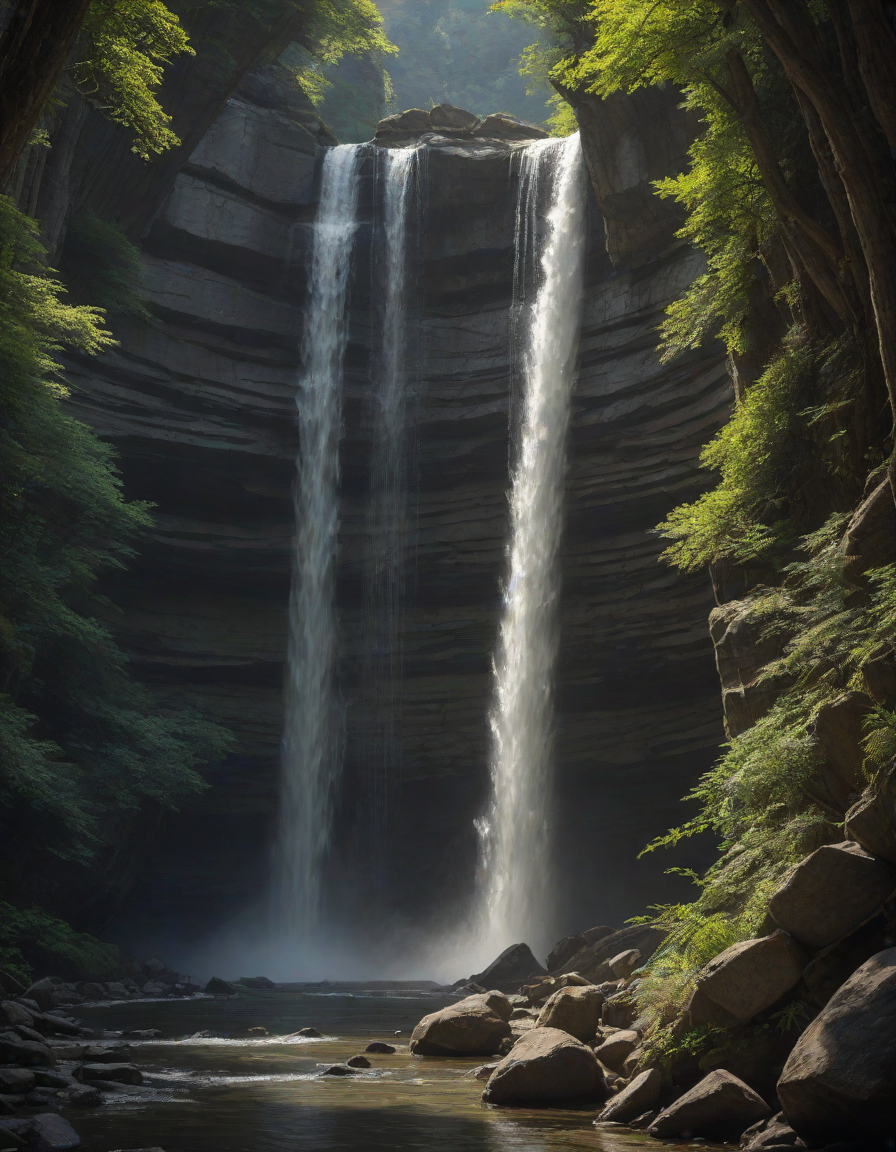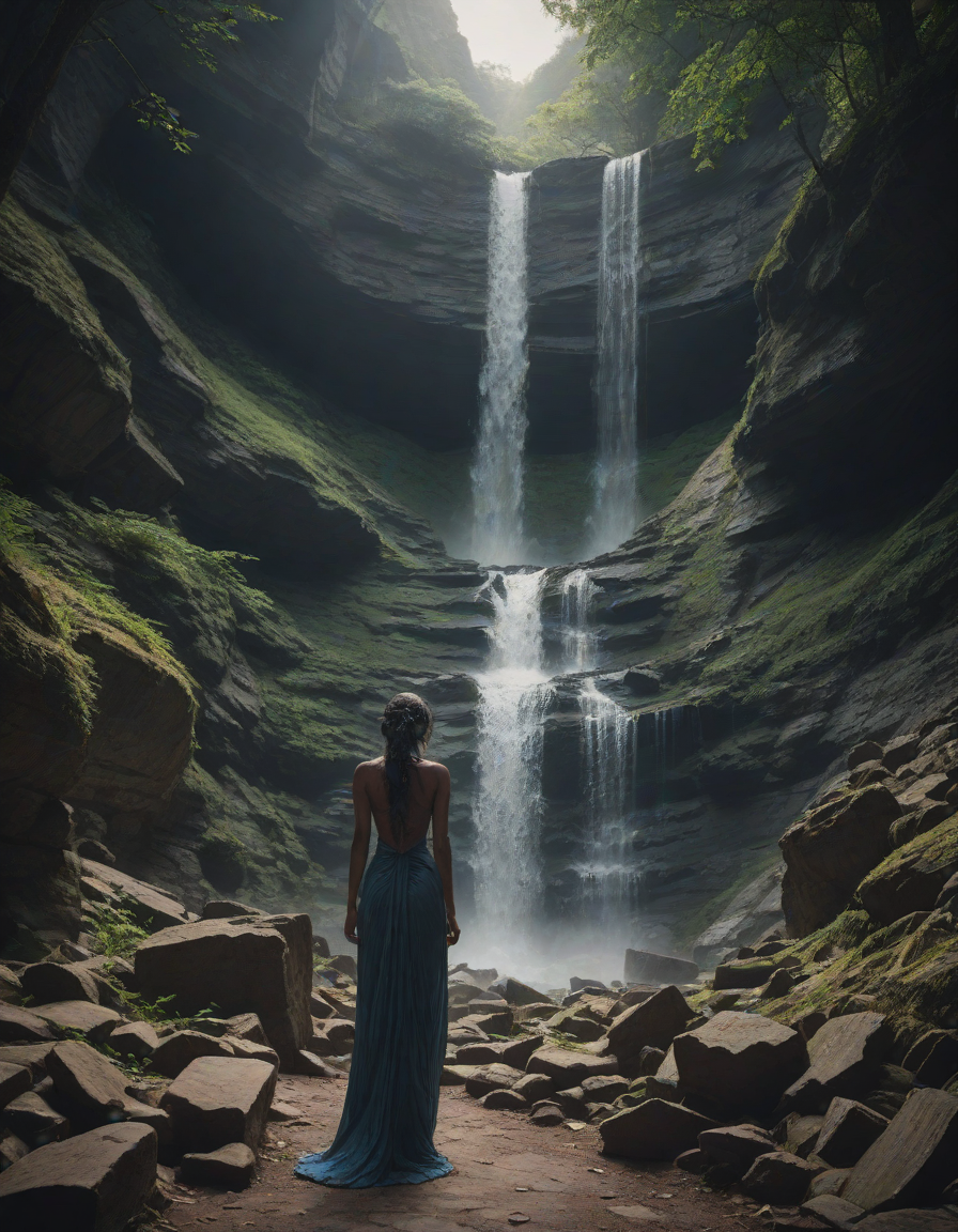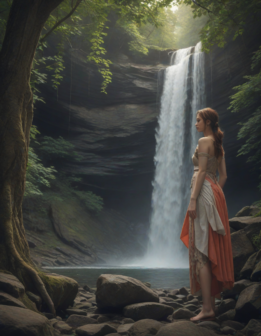 cascading waterfall, Gorgeous ... (4 loras merged)