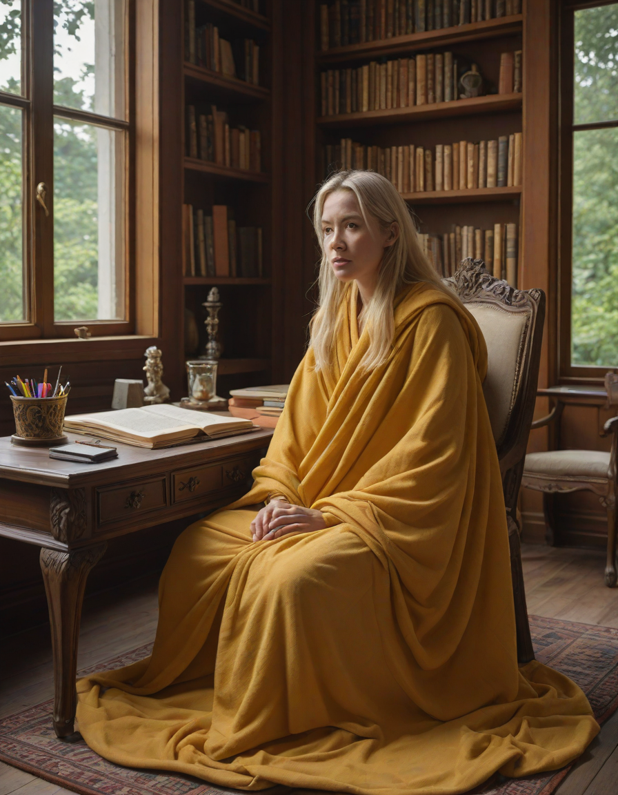 fearful, comfy blanket wrapped... (4 loras merged)
