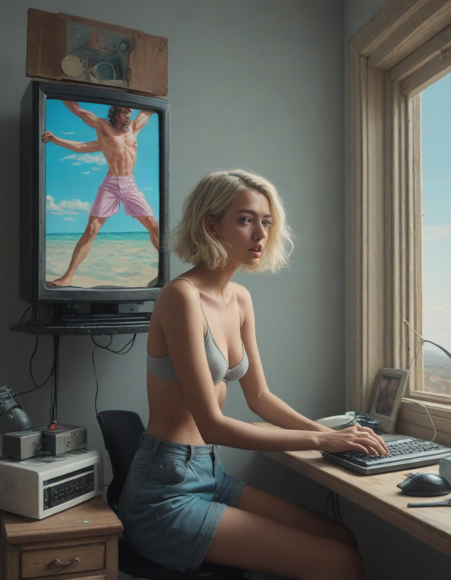 Rock-hard abs glistening, sitc... (6 loras merged)