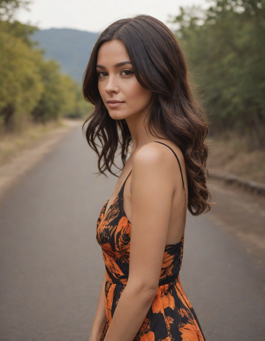 in a sundress, woman taking a ... (6 loras merged)