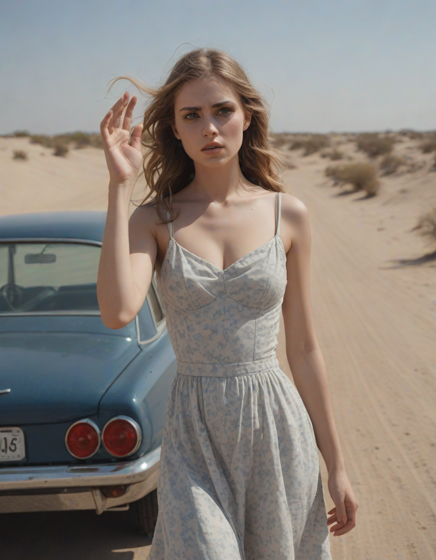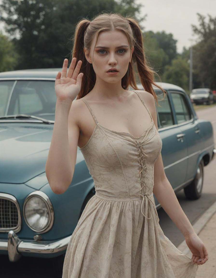 Girl in dress waving her hand ... (2 loras merged)