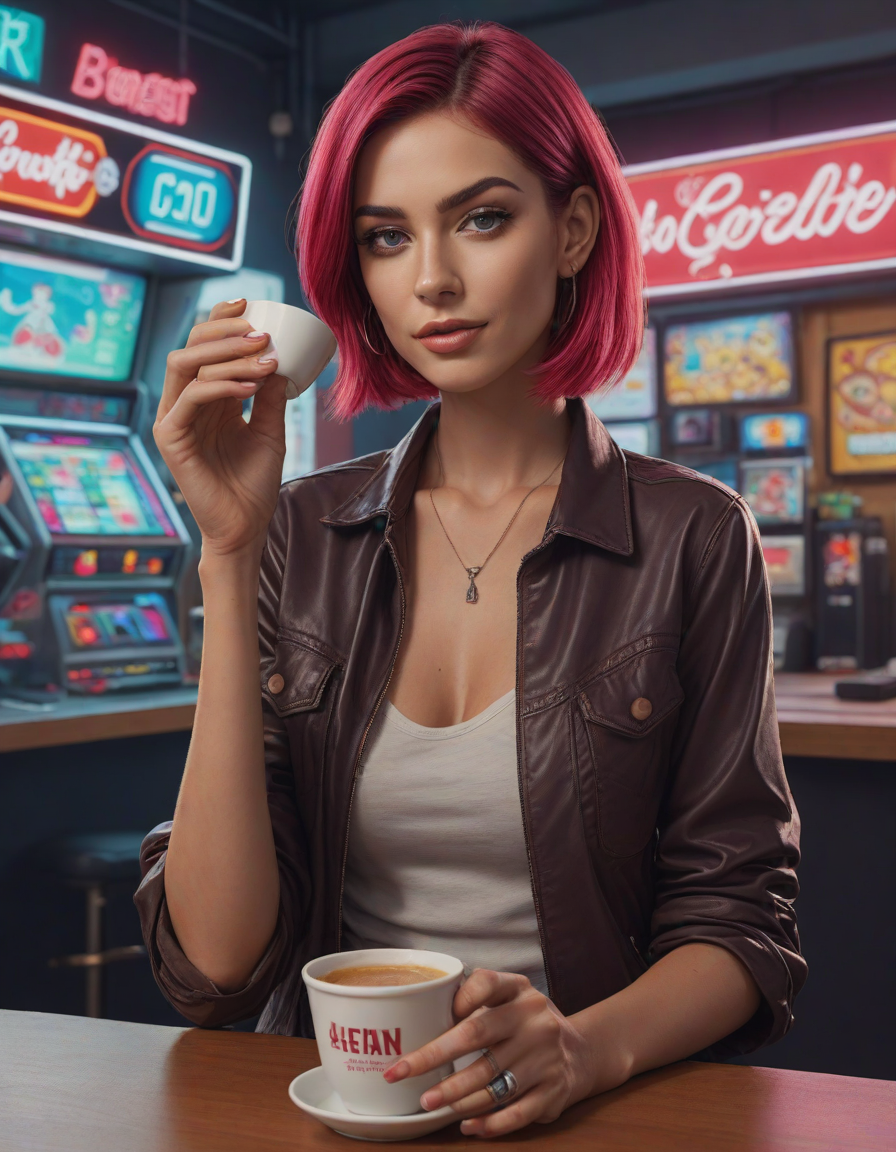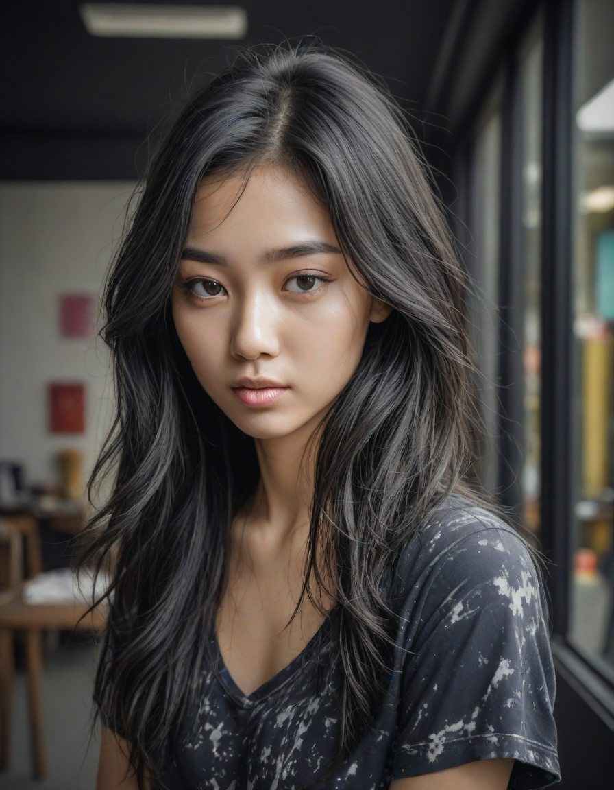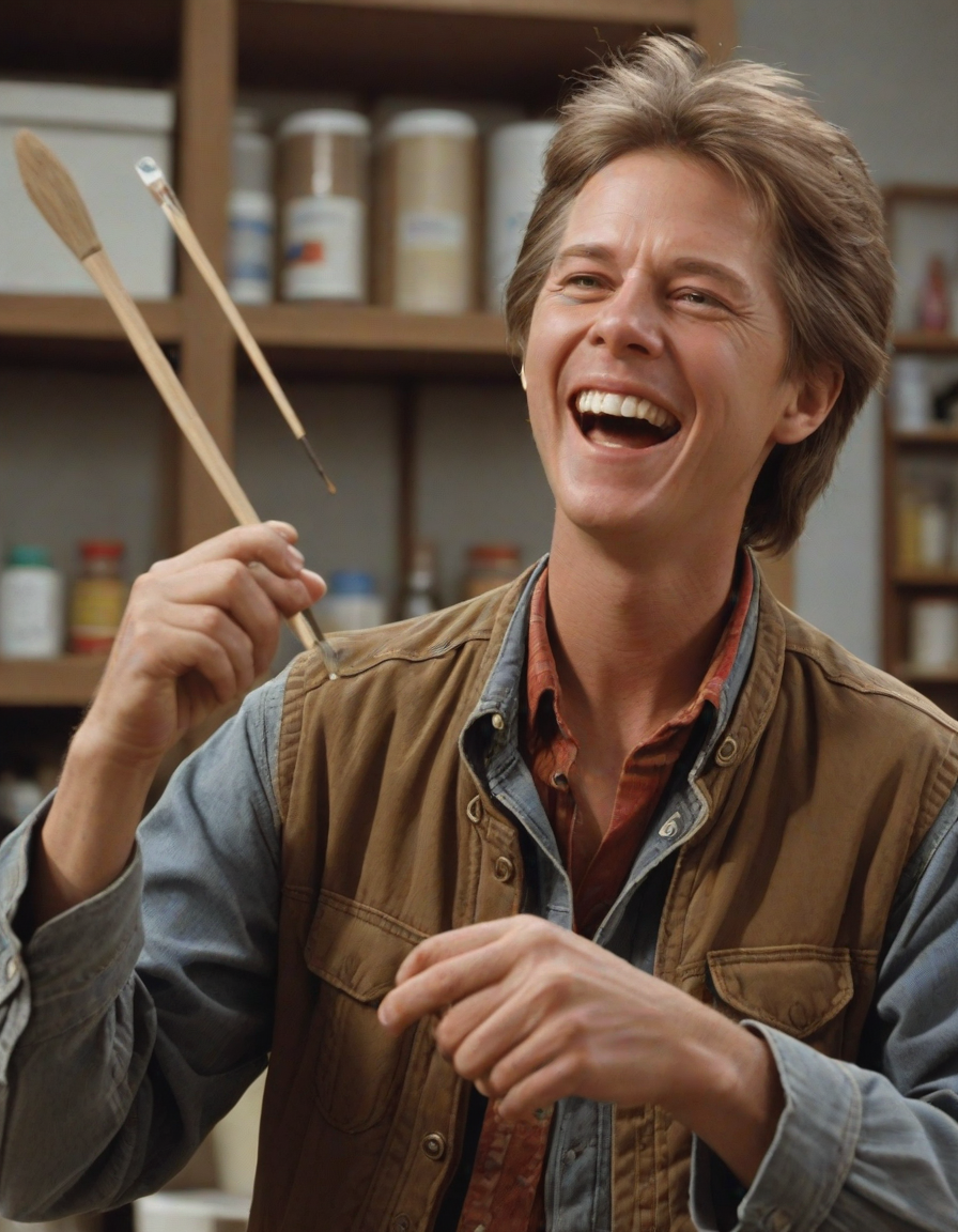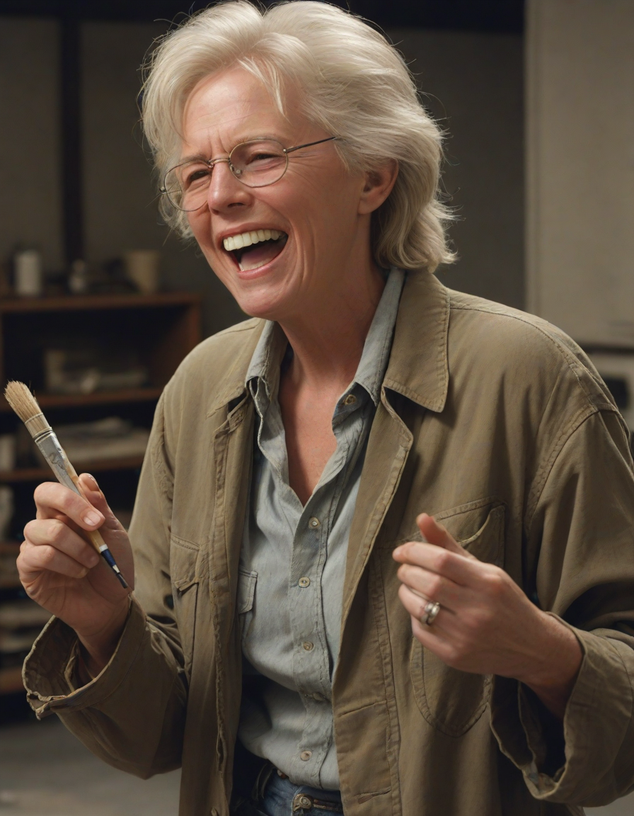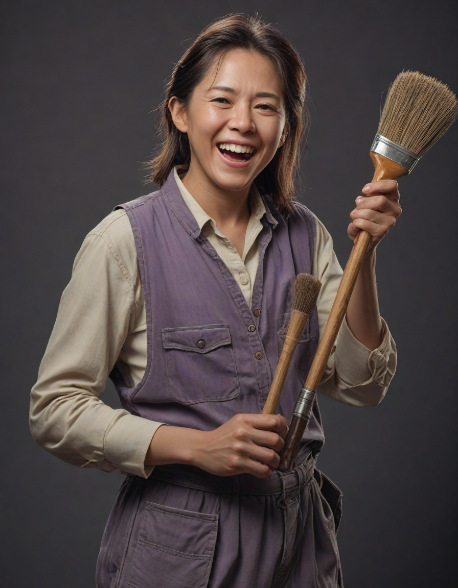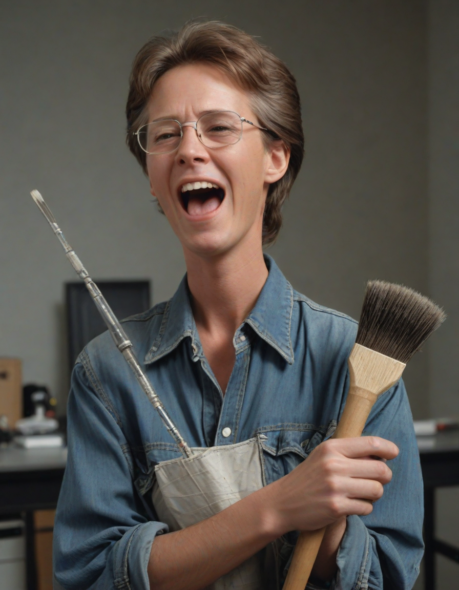 Relaxed, holding a paintbrush,... (5 loras merged)