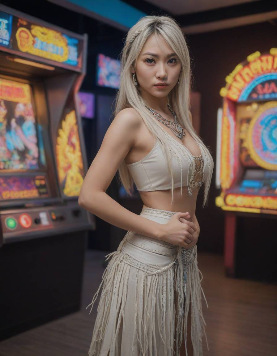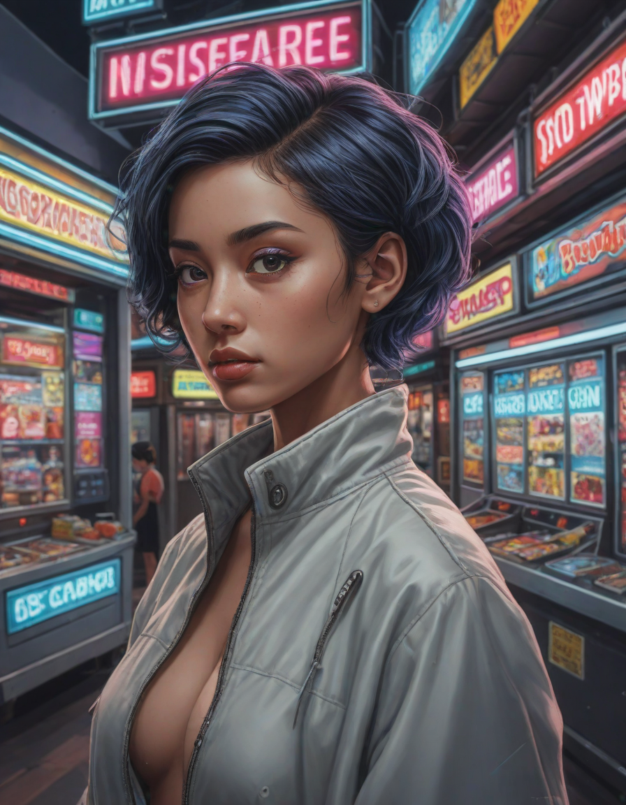 flirtatious, wearing 80s cloth... (9 loras merged)