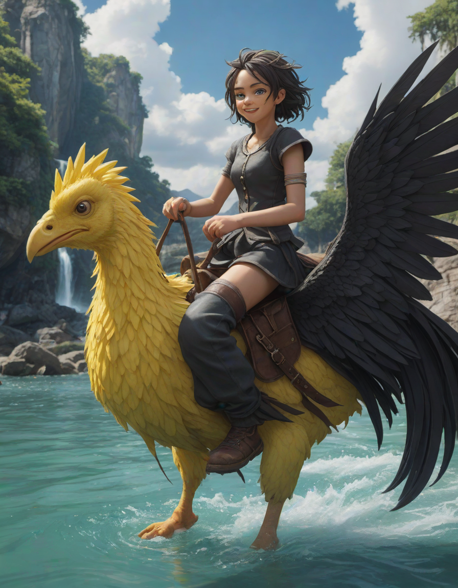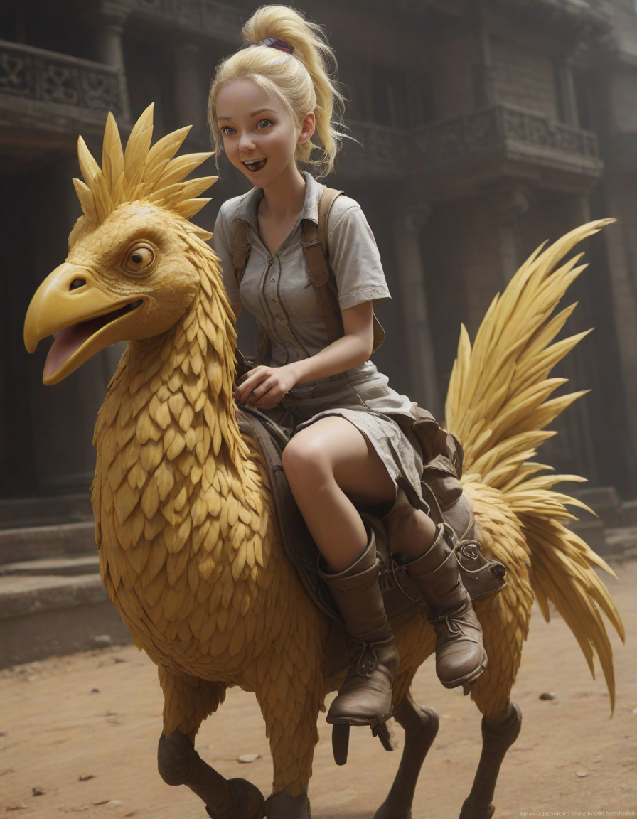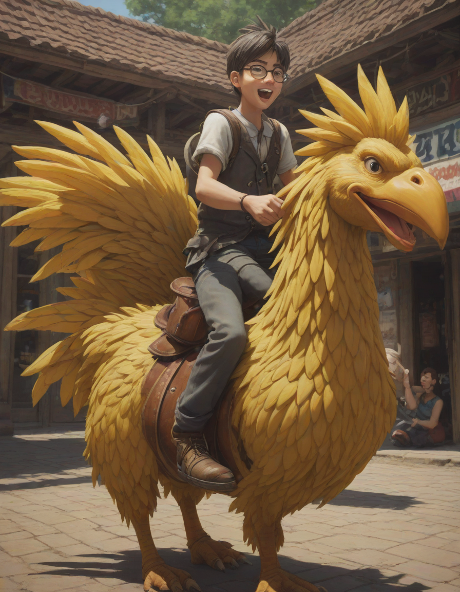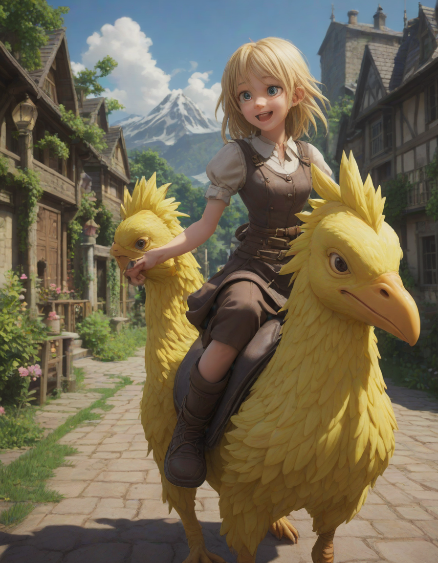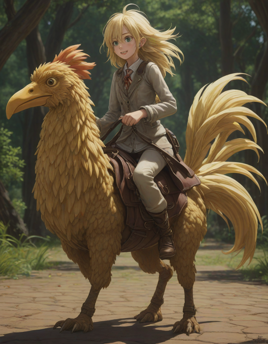 Riding a Chocobo, acting smug,... (5 loras merged)