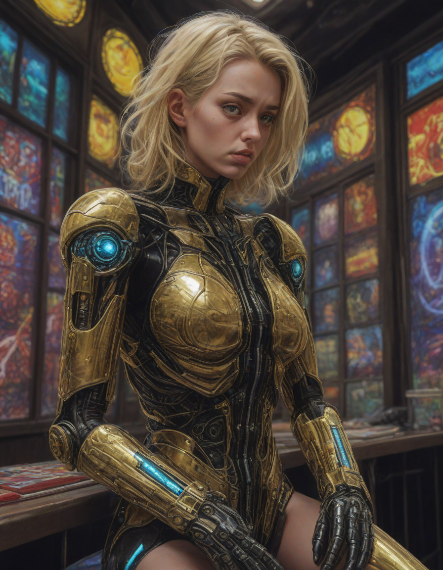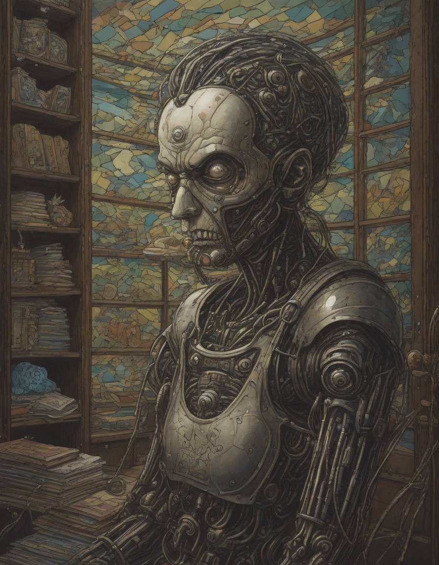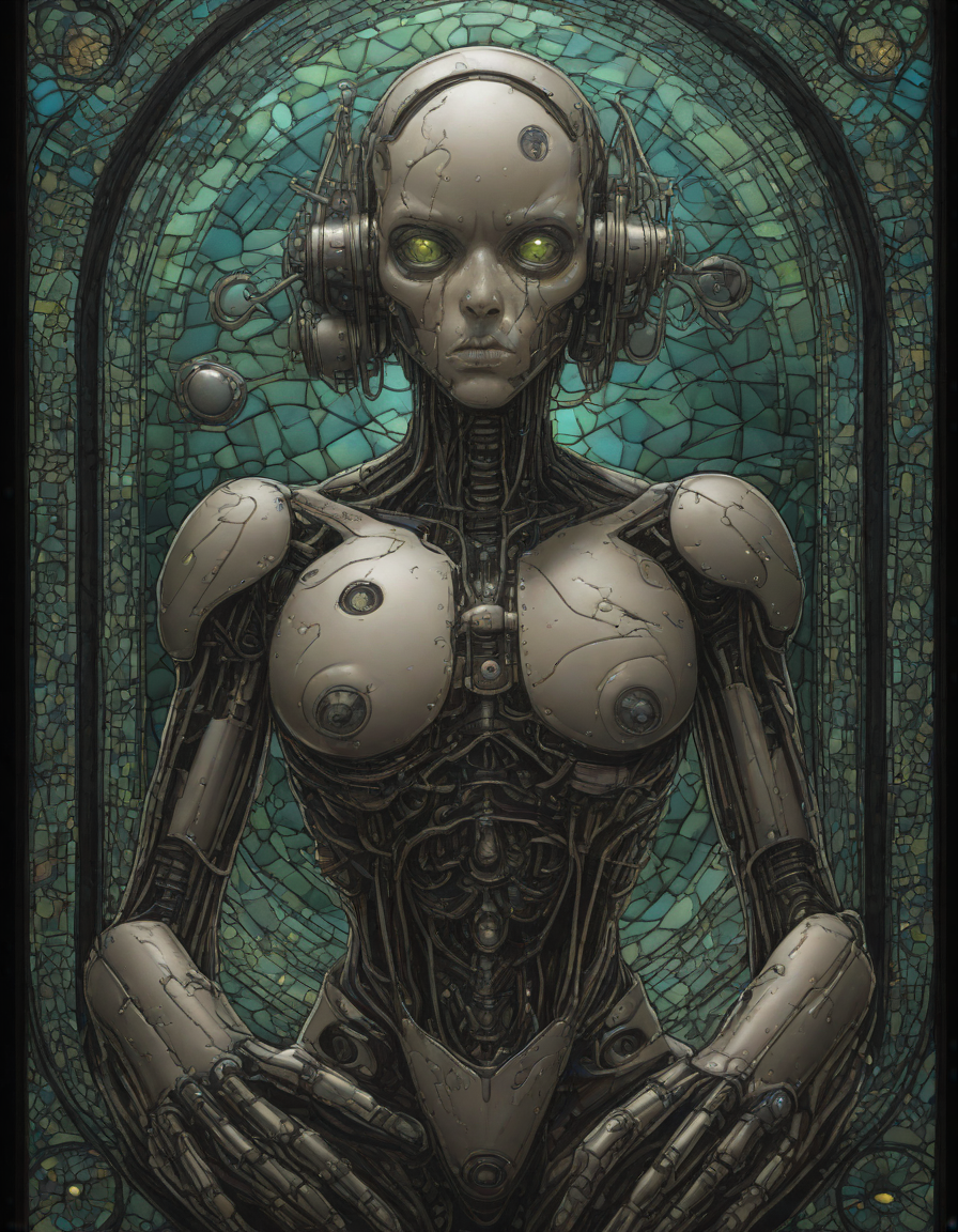 robot, Dreamy gaze, stained gl... (13 loras merged)