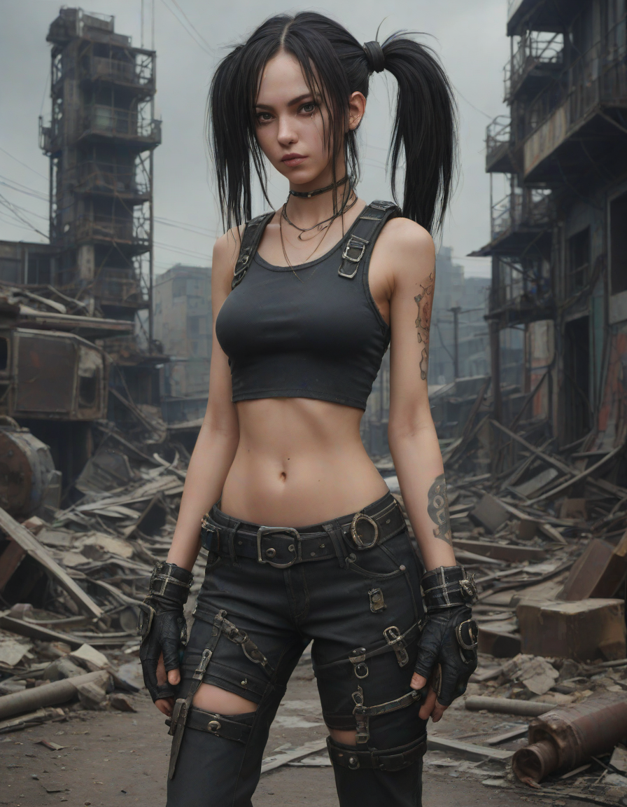 glitch art, Edgy fashionista, ... (10 loras merged)