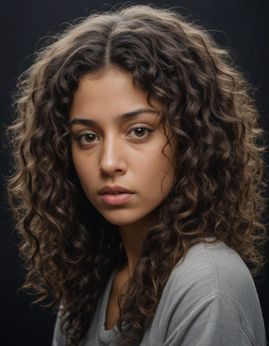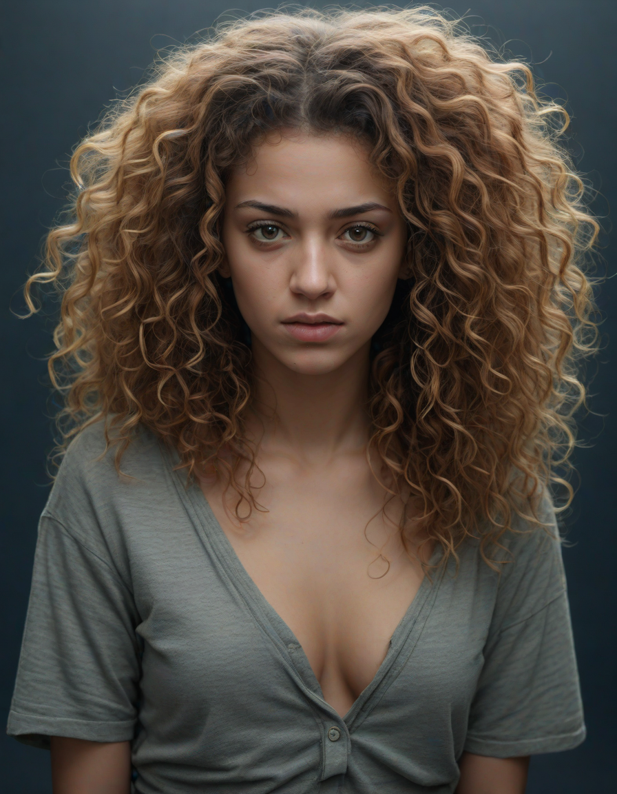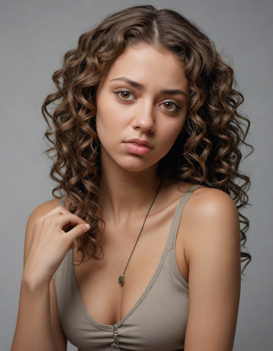wistful gaze, curly hair, Smug... (6 loras merged)