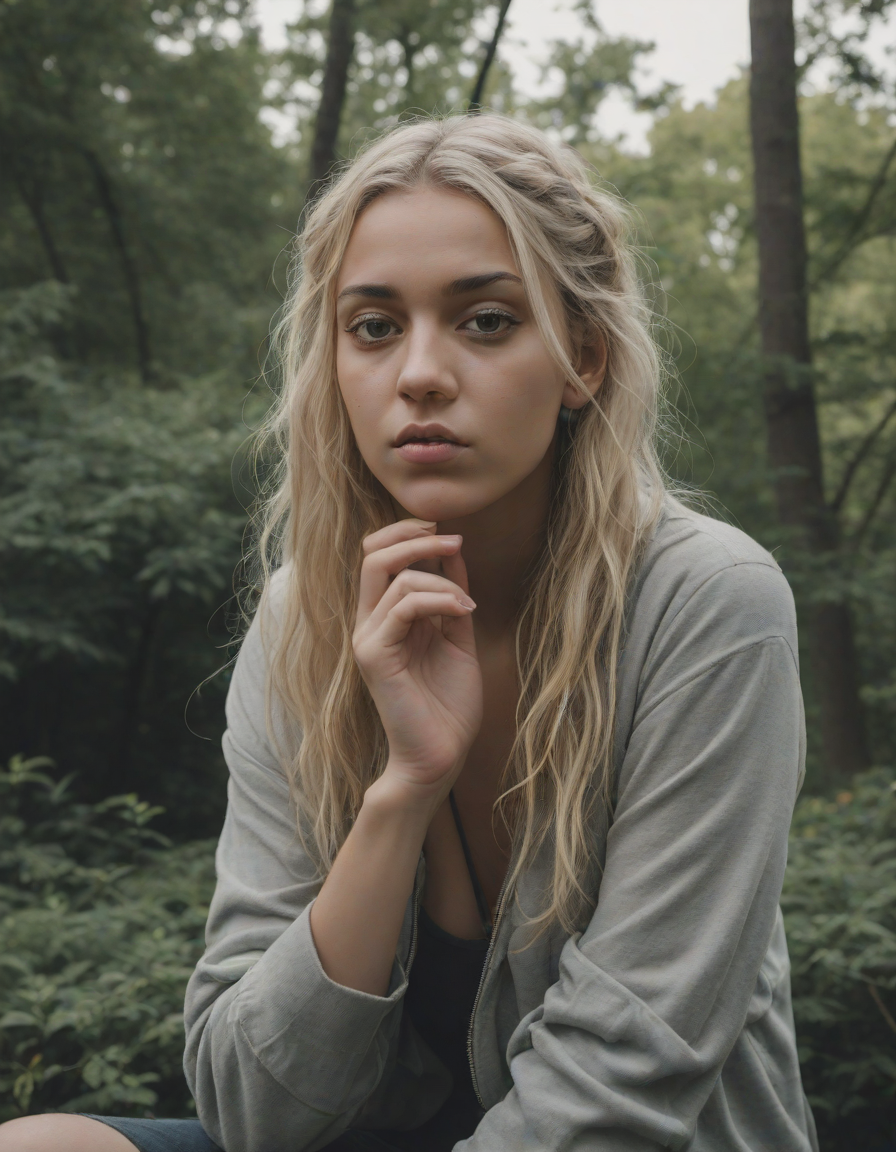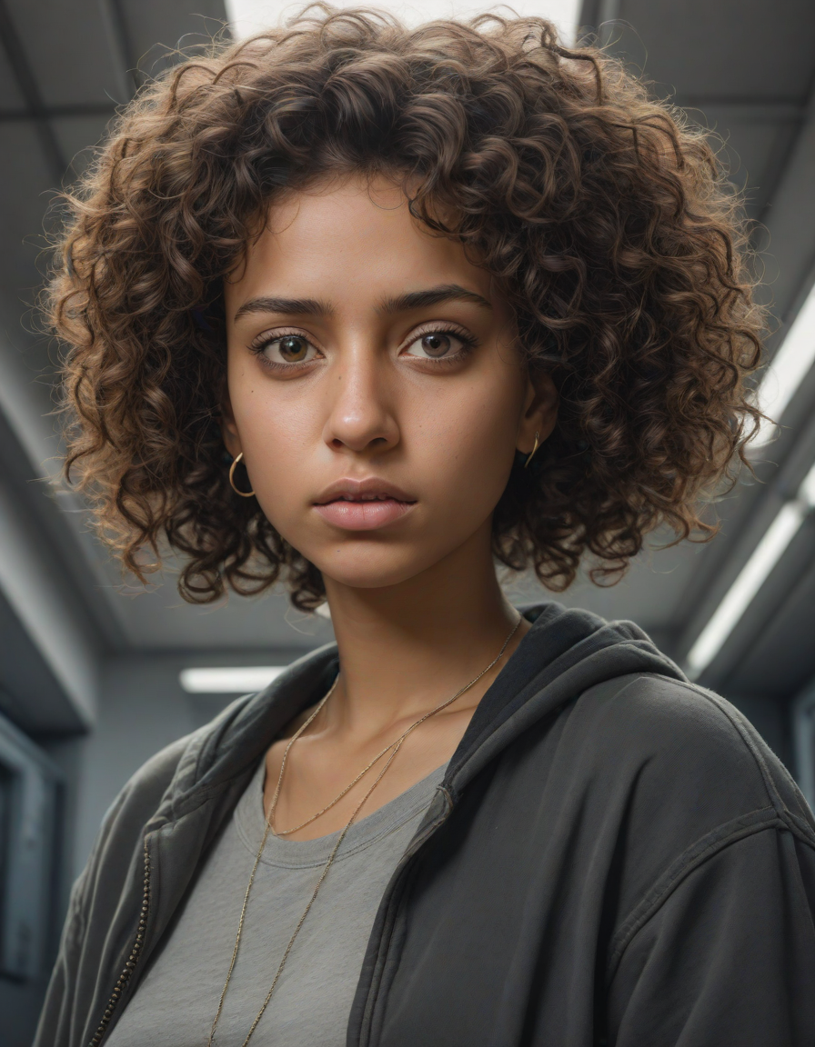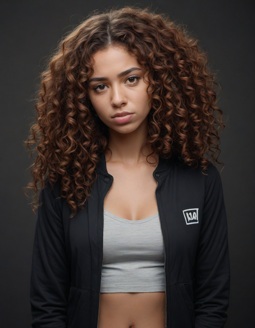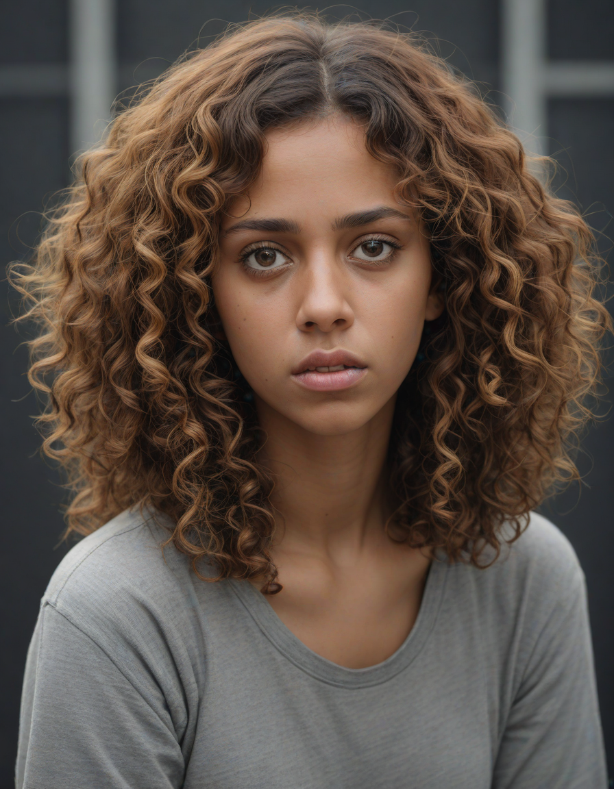wistful gaze, curly hair, Smug... (6 loras merged)