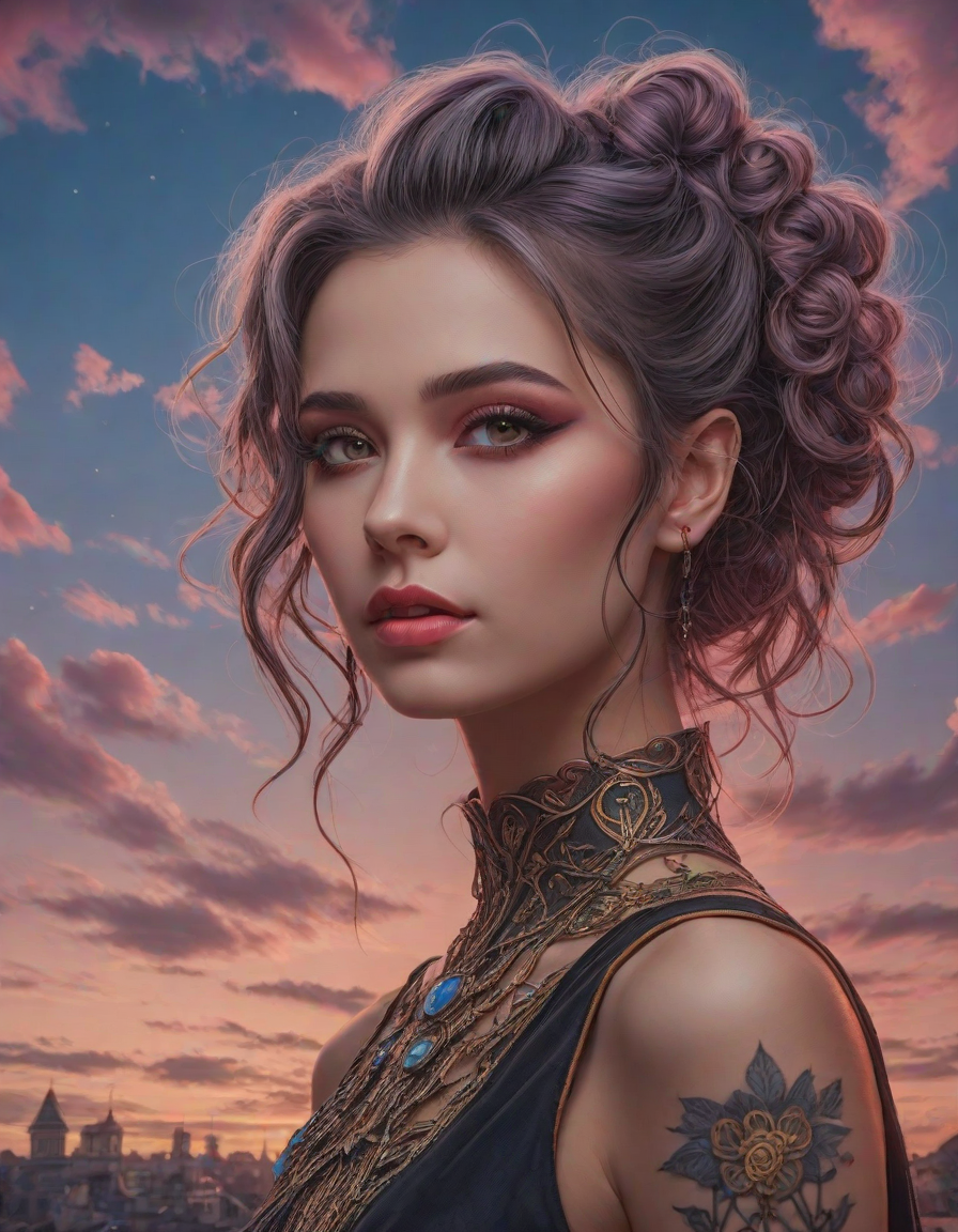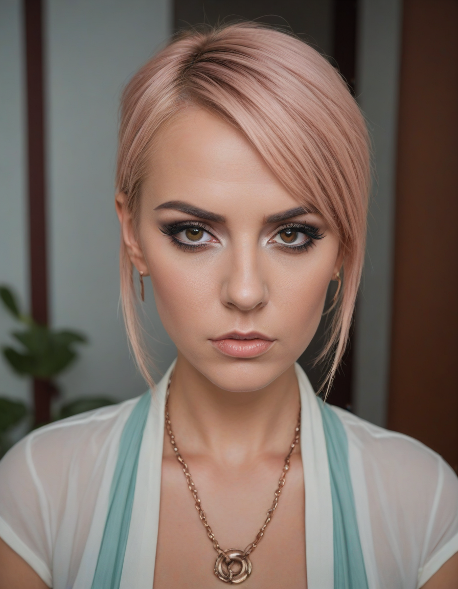 makeup, scowling, Edgy fashion... (3 loras merged)