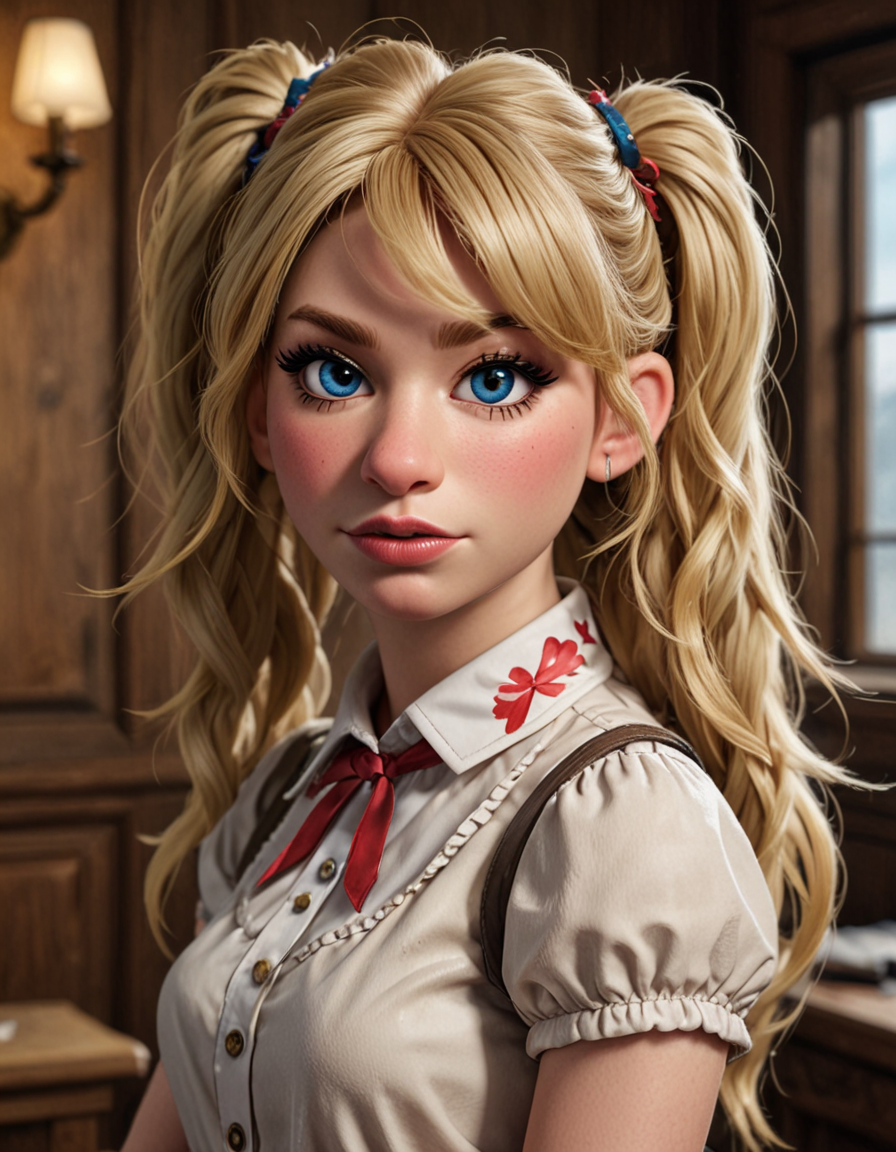 high-arched eyebrows, pronounced cheekbones, full lips, narrow facial structure, small chin, pointed nose tip, deep-set eyes, prominent jawline, smooth forehead, elongated face shape, subtle eye creases, thin nose bridge, voluminous cheek appearance, defined lip contour, sculpted facial silhouette, soft nasolabial folds, high forehead, delicate ear shape, refined jaw angle, sleek facial contour, Caucasian American Girl, Bimbo Facial Features, Barbie-esque Facial Features, british, pale, 18yo, 18 year old, young, youthful,