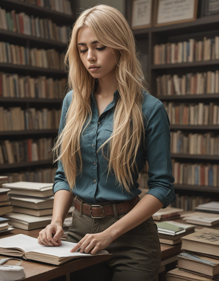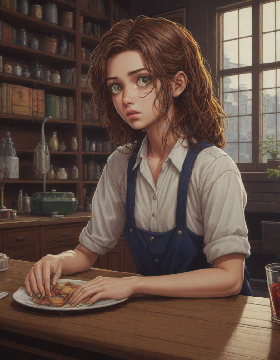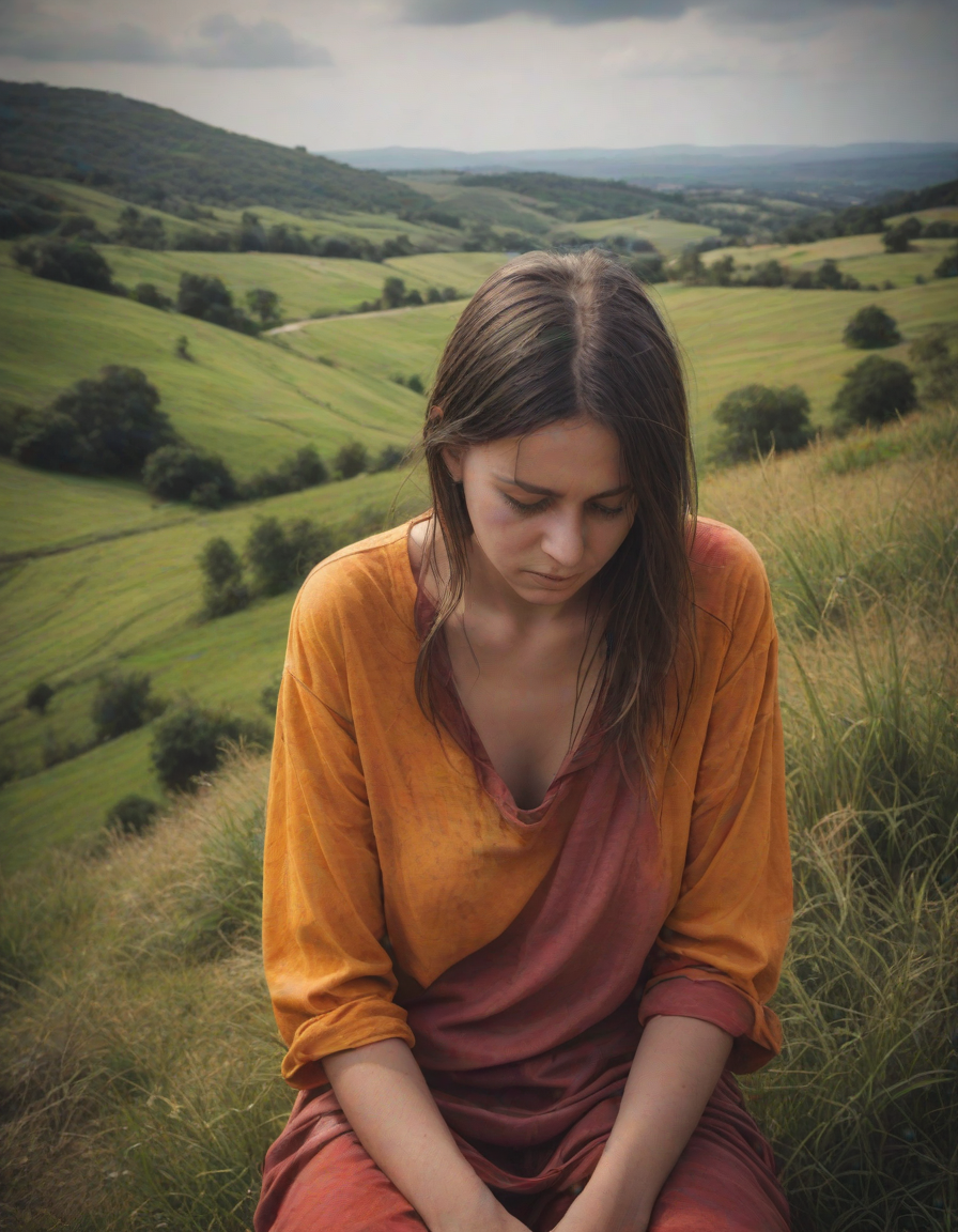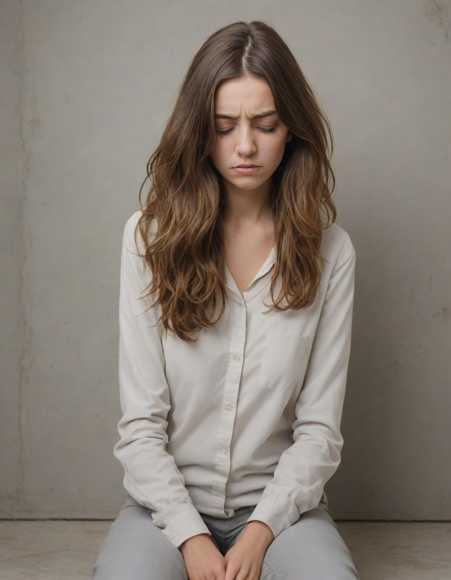 brunette, slumped in despair, ... (4 loras merged)
