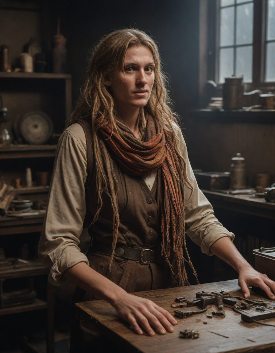 slumped in despair, tattered, ... (3 loras merged)