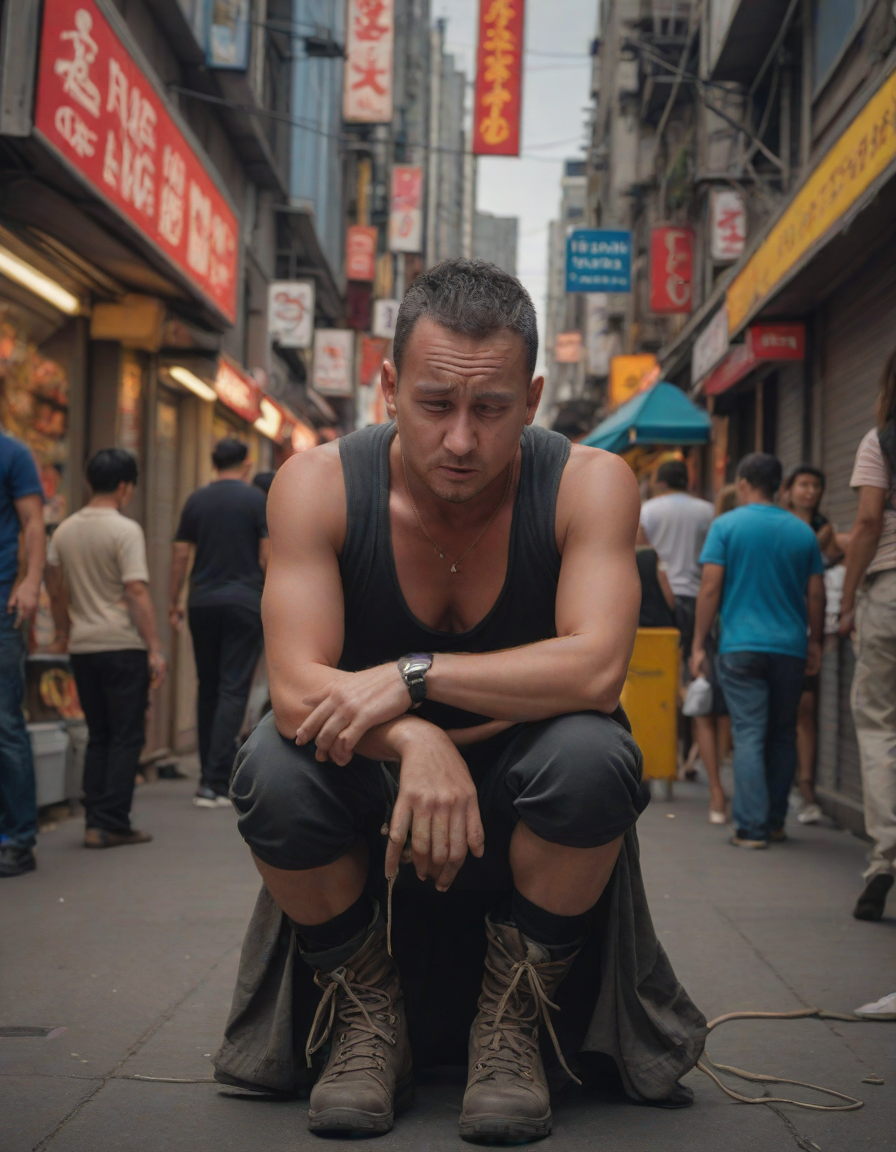 slumped in despair, leaning ba... (5 loras merged)