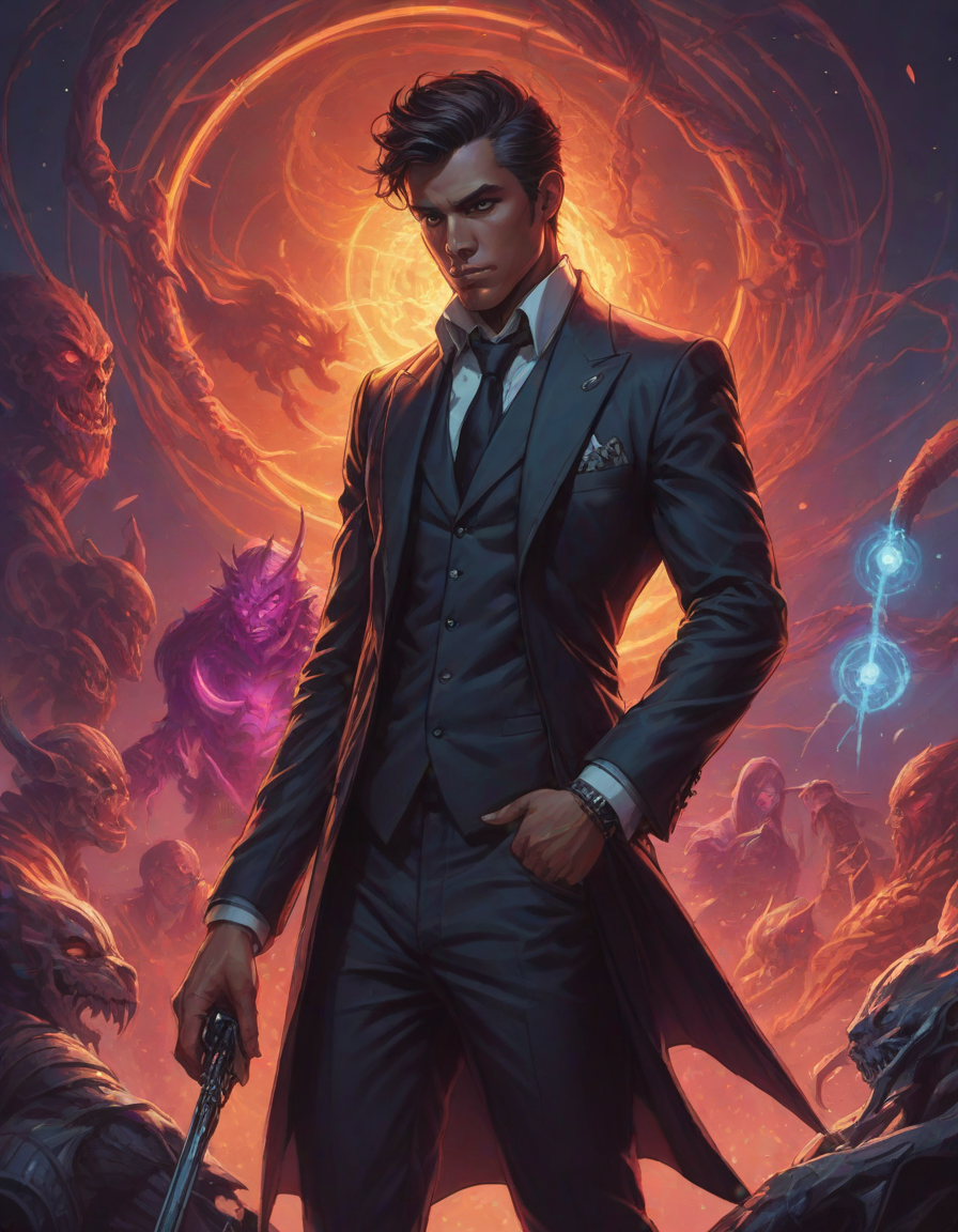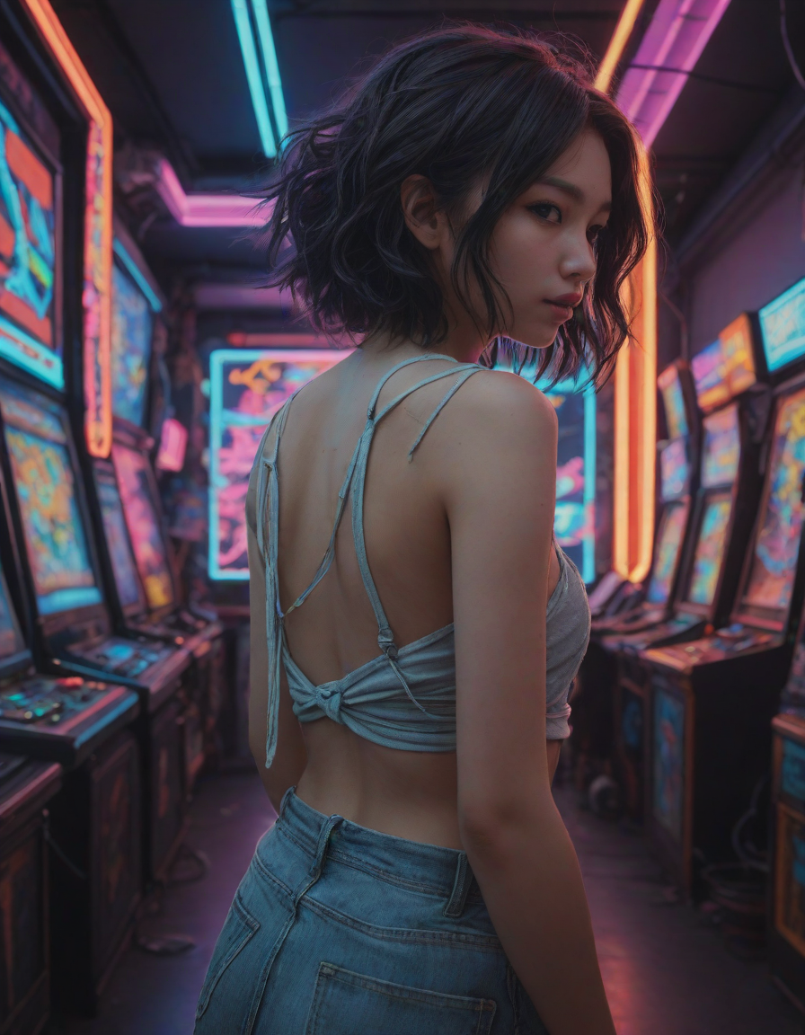 Eyes glowing, wearing 90s clot... (5 loras merged)