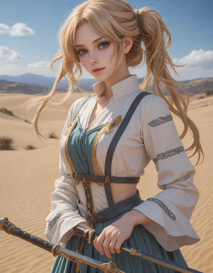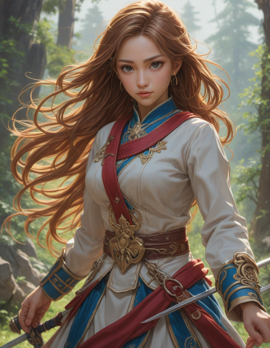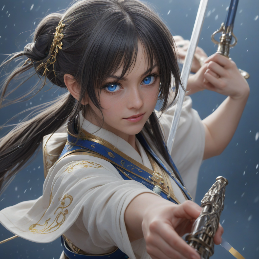 A sparkling, sapphire-eyed swordswoman who dances gracefully