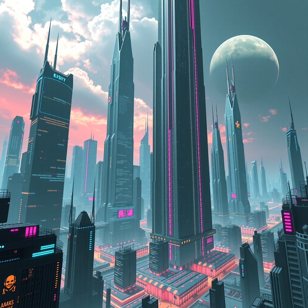 retro 80s synthwave style, neon grid lines, chrome surfaces