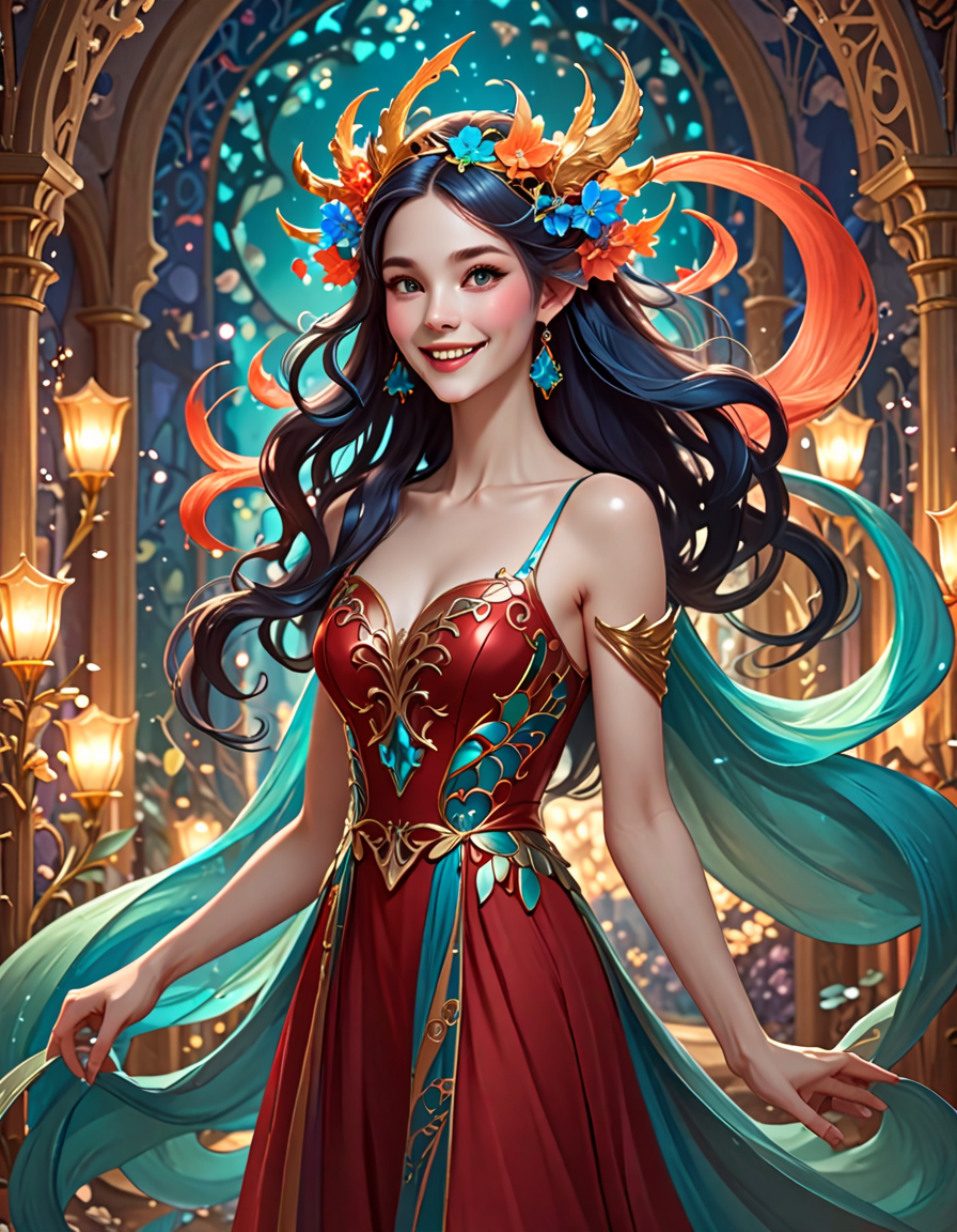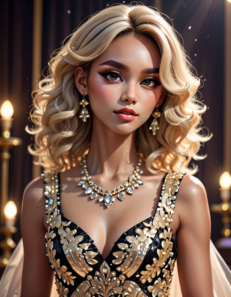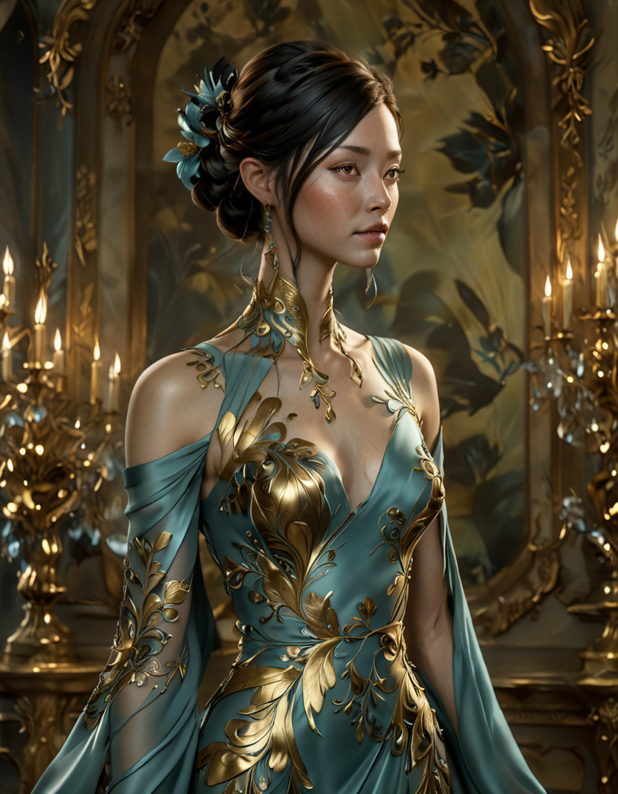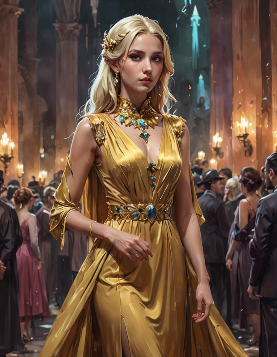 wearing casual jeans→wearing elegant dress