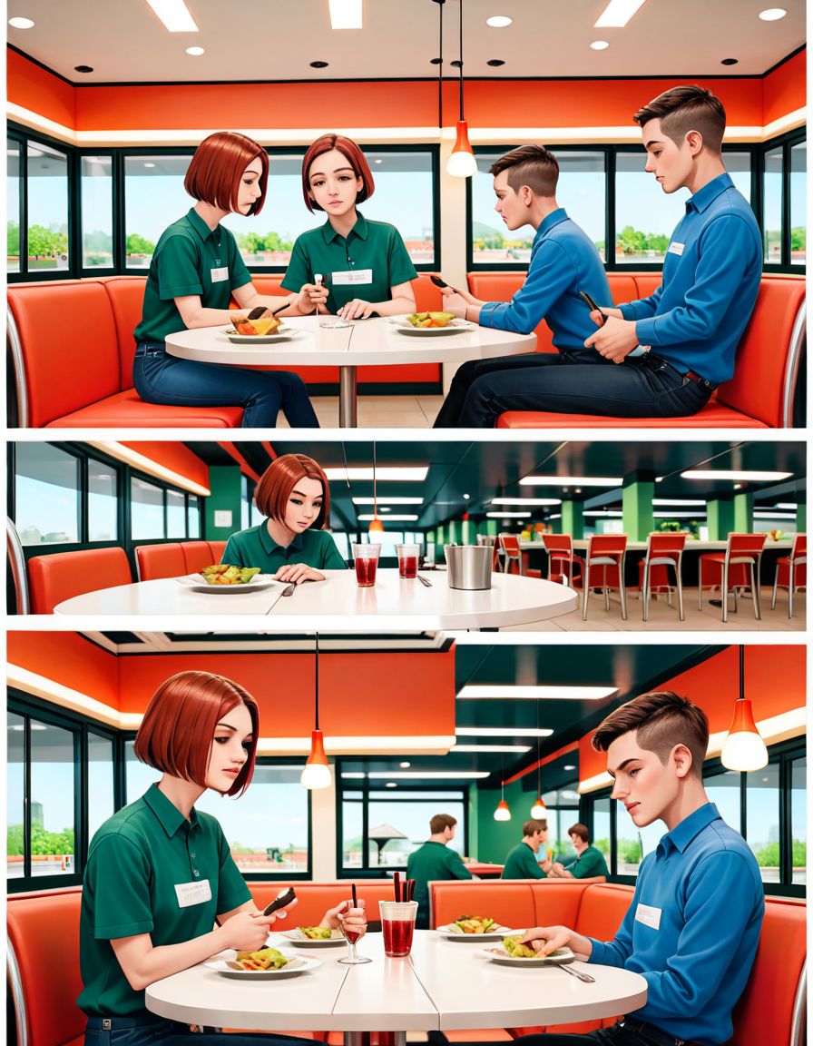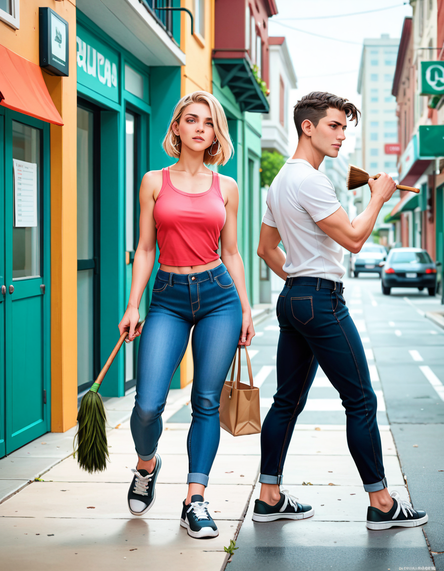 Attributes: woman, man, bright, dim, cartoon, photo, anime
