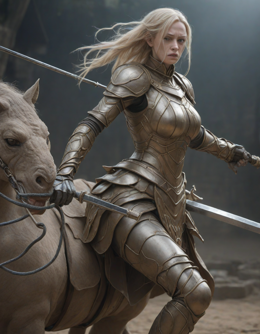 cladorned in rugged plate mail... (5 loras merged)