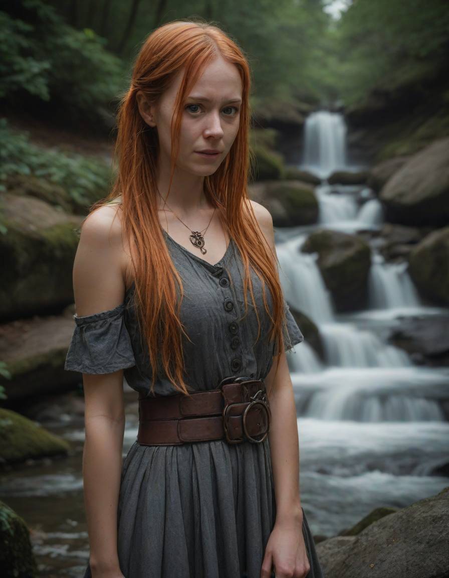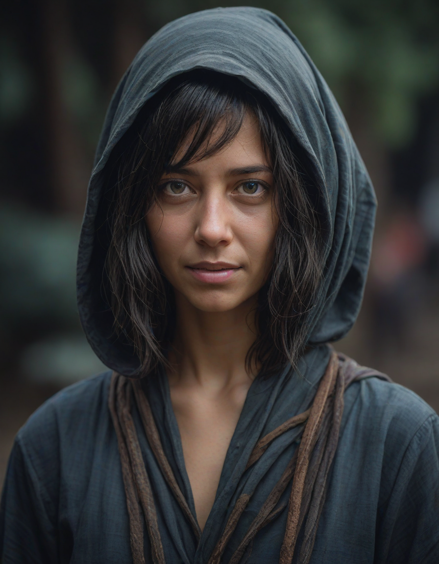 fearful, a lady wearing a hood... (5 loras merged)