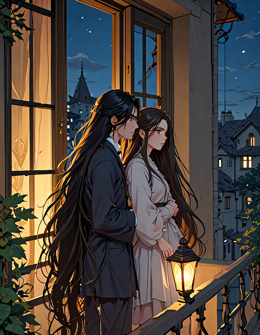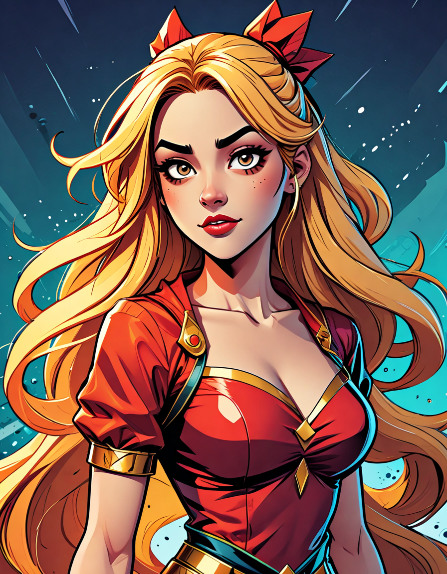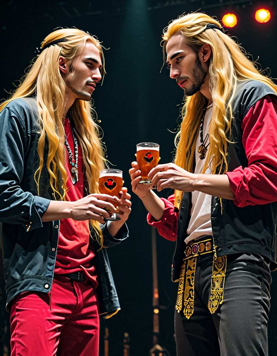 Attributes: 1girl, 1boy, blonde, brunette, cartoon, photo, anime