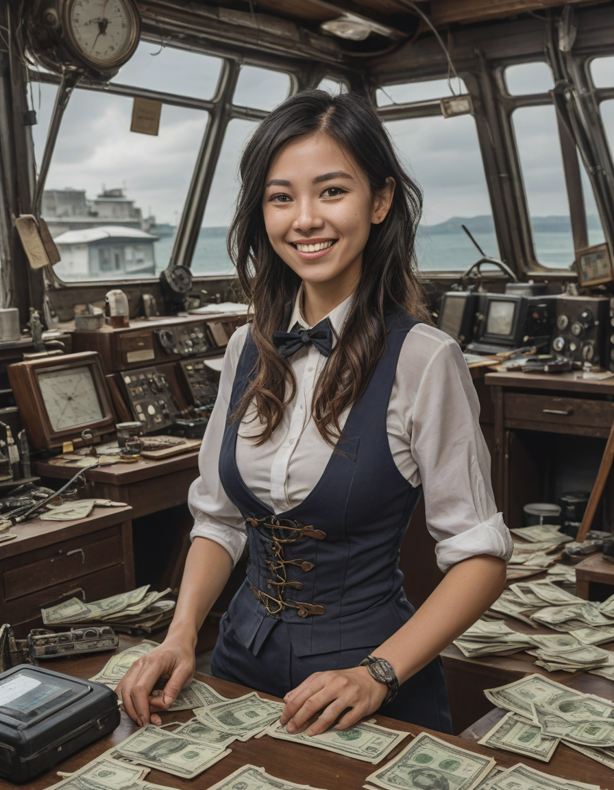 Teeth-filled grin, on the bus,... (13 loras merged)