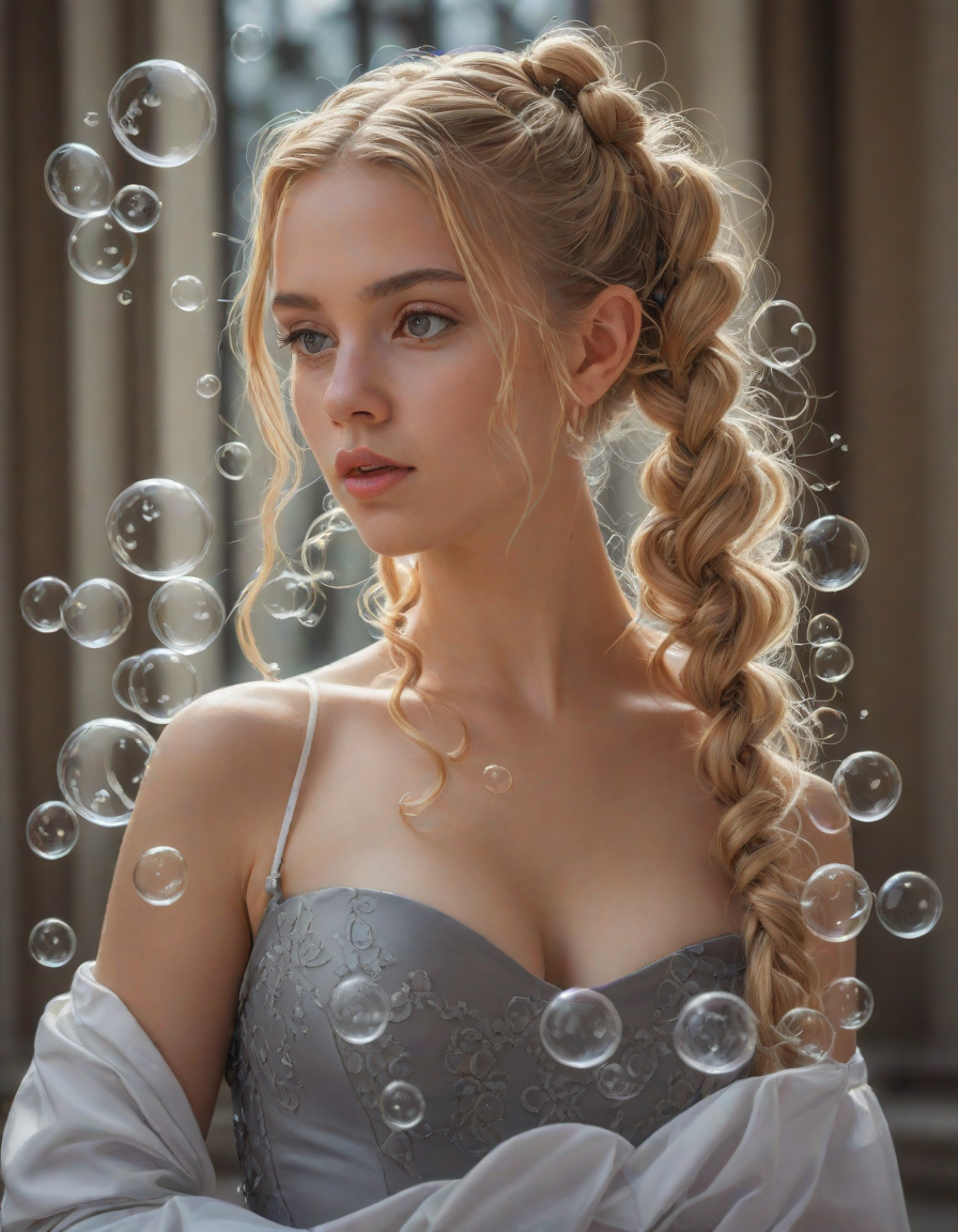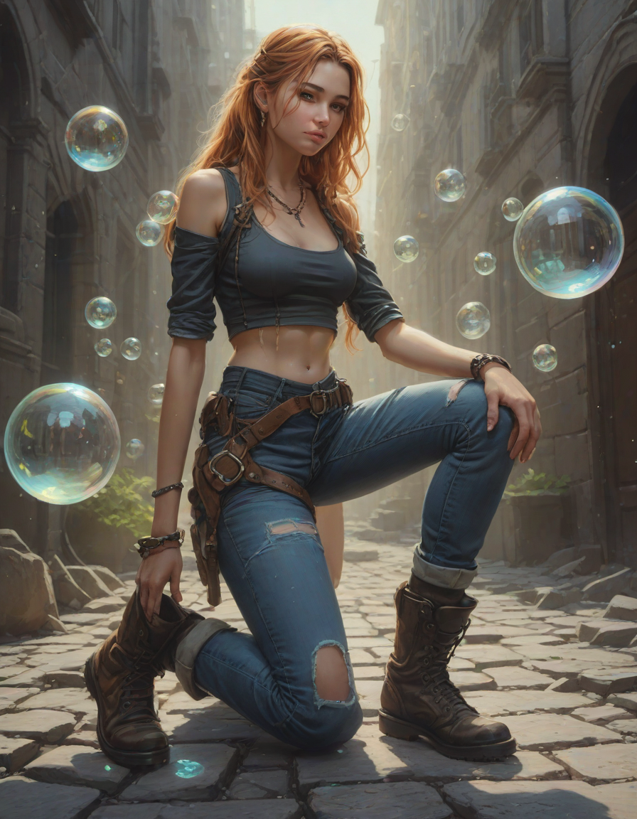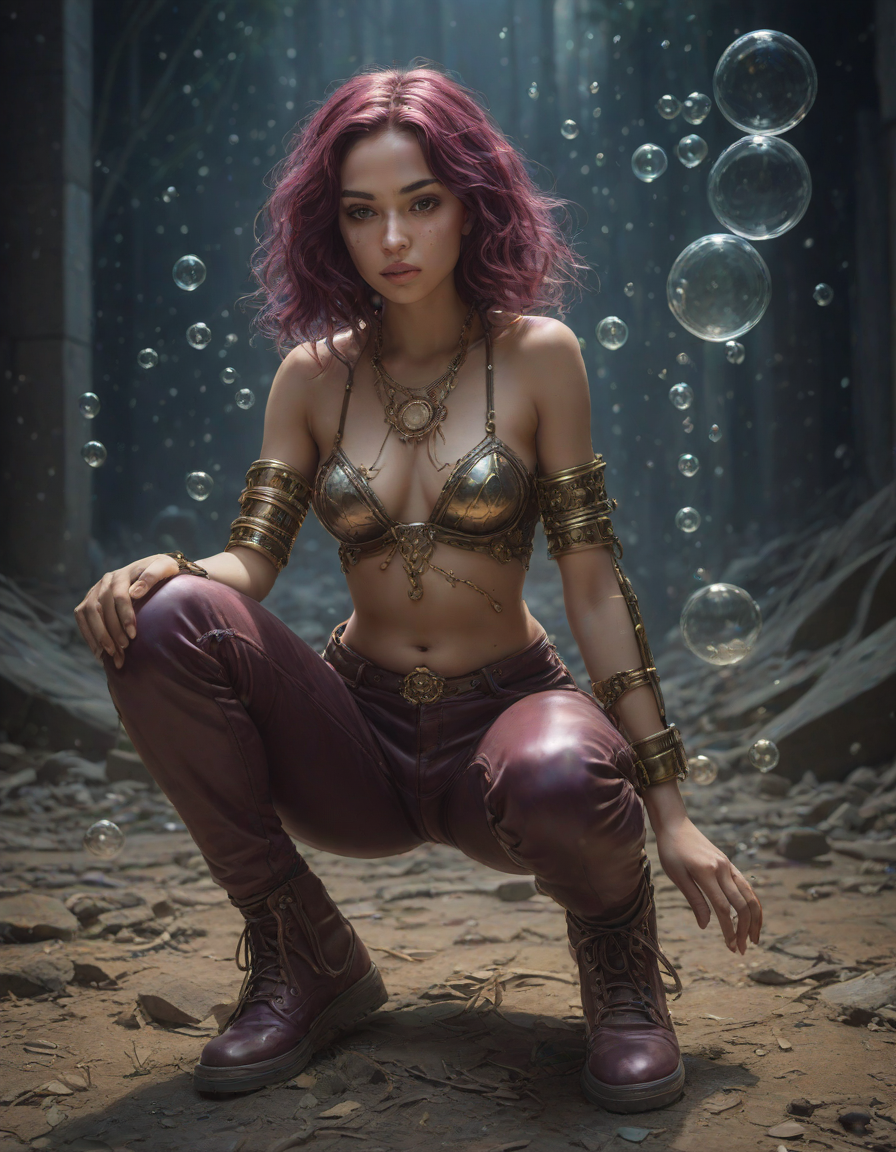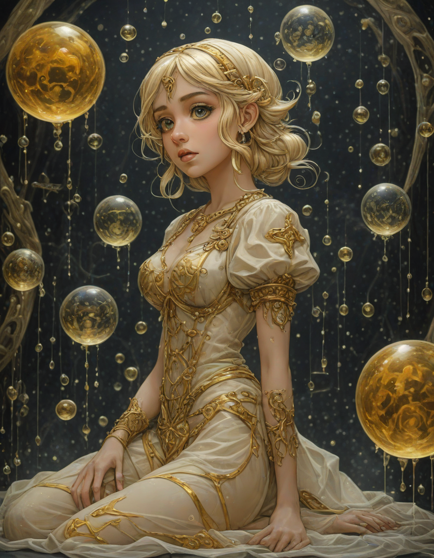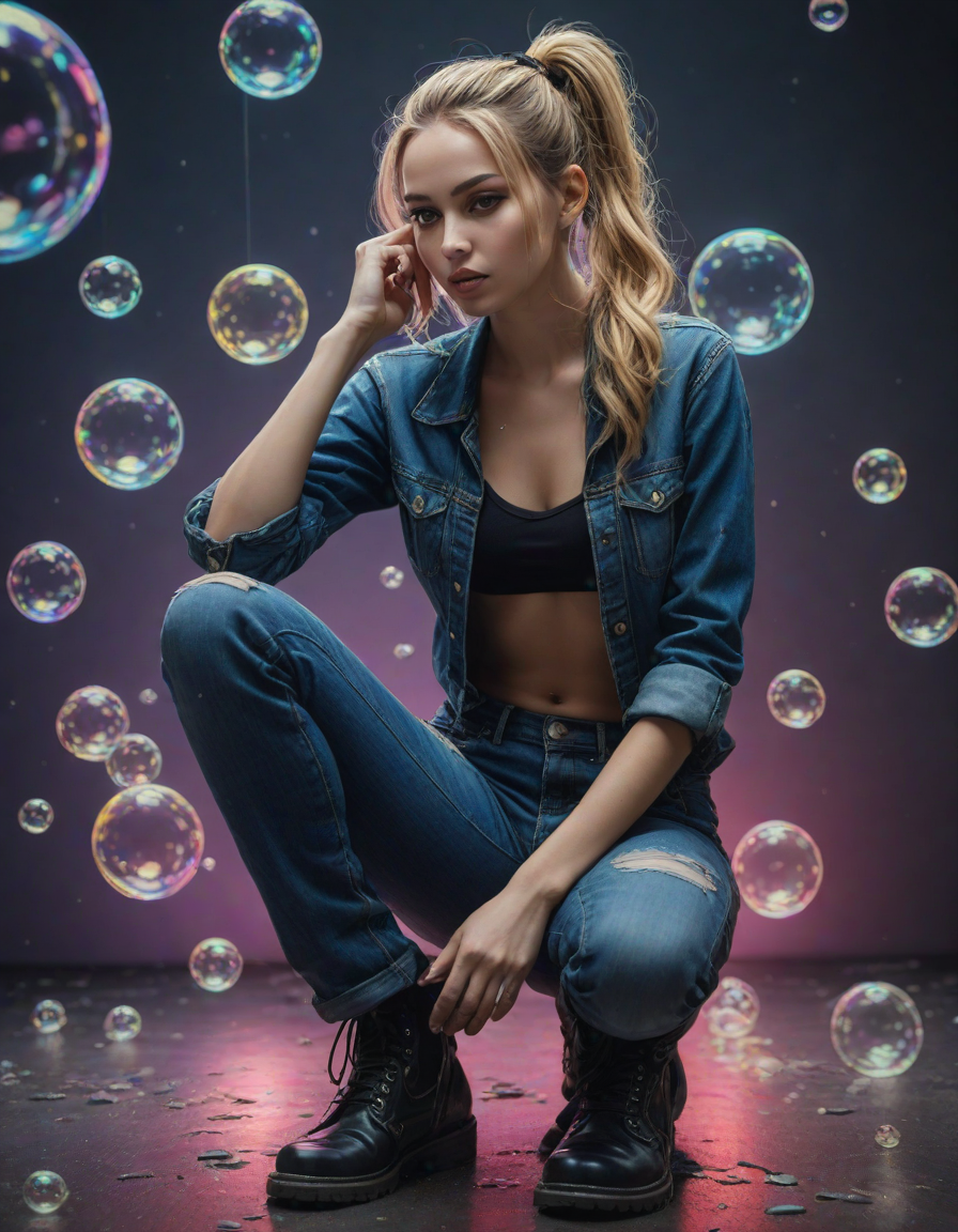 abstract bubbles, kneeling bef... (4 loras merged)