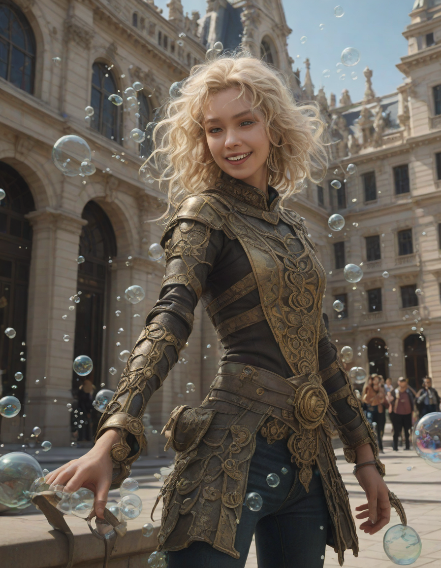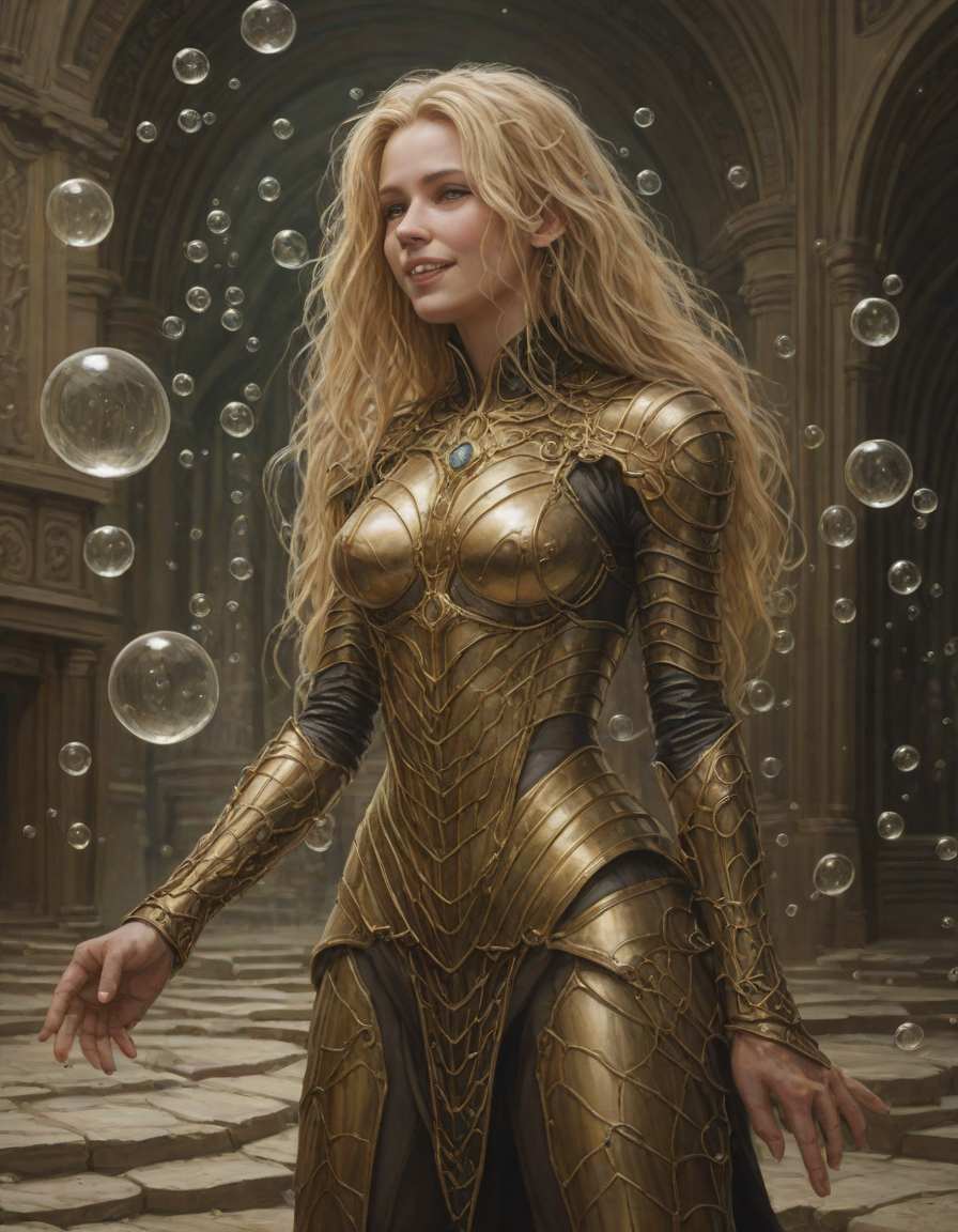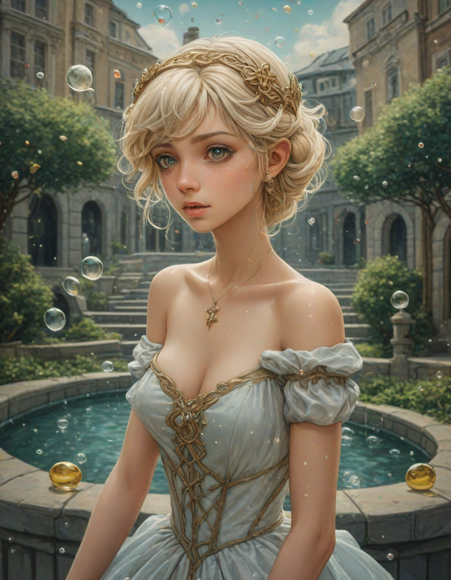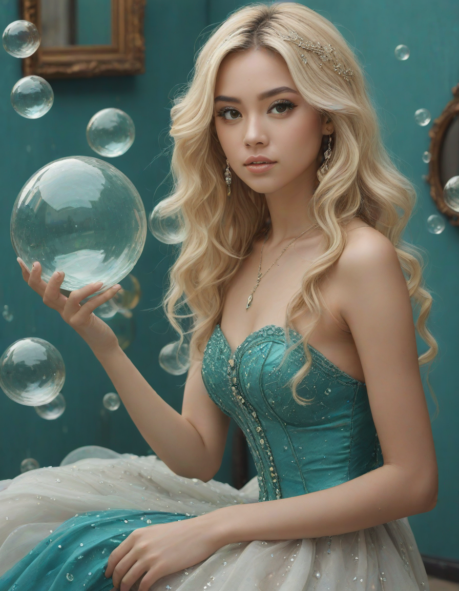 abstract bubbles, kneeling bef... (4 loras merged)
