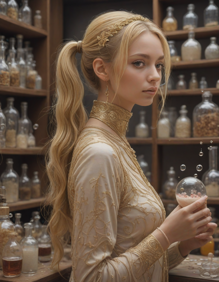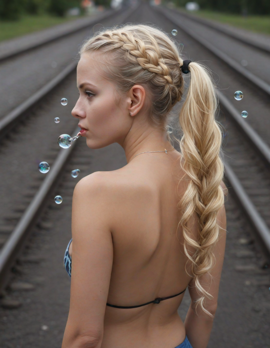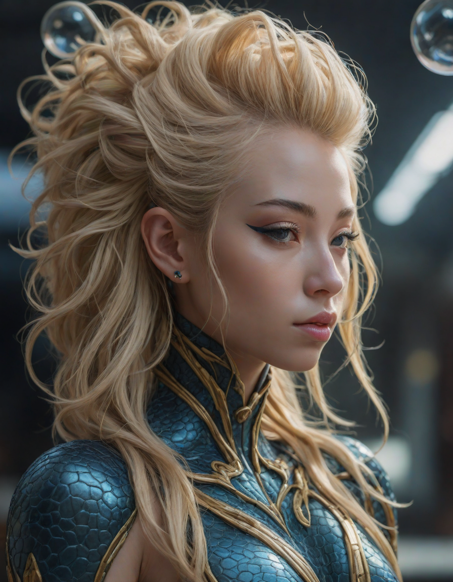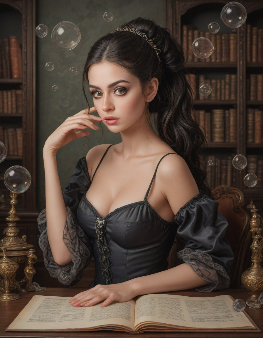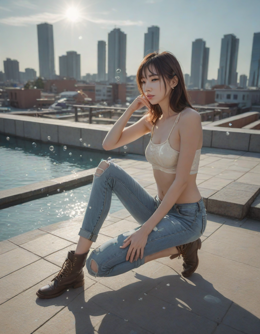 abstract bubbles, kneeling bef... (4 loras merged)
