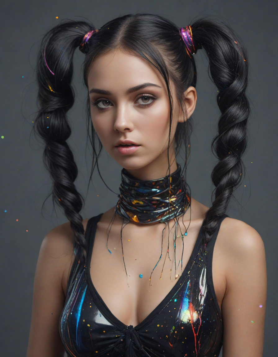 pigtails, Glistening skin, cyb... (13 loras merged)