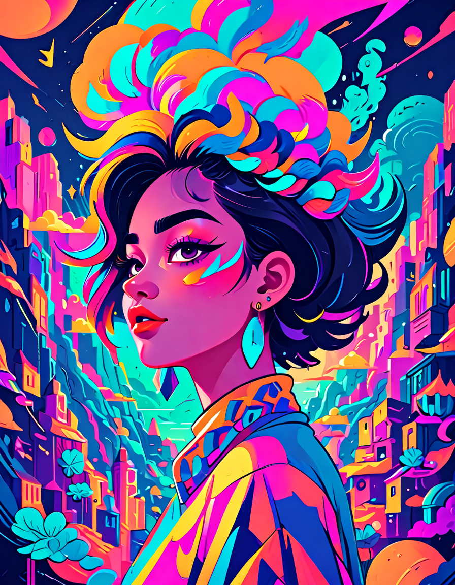 colorful psychedelic style, ab... (3 doras merged)