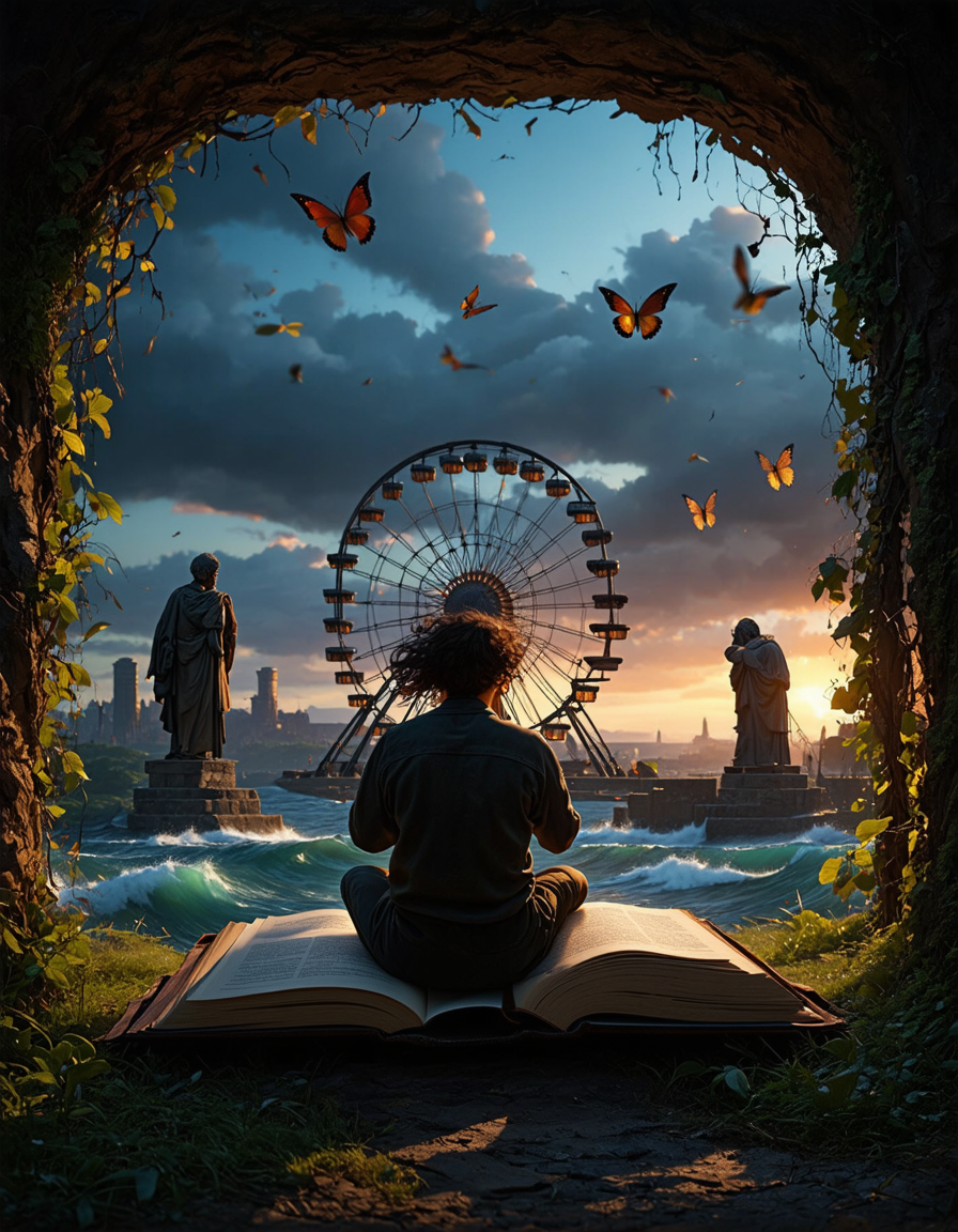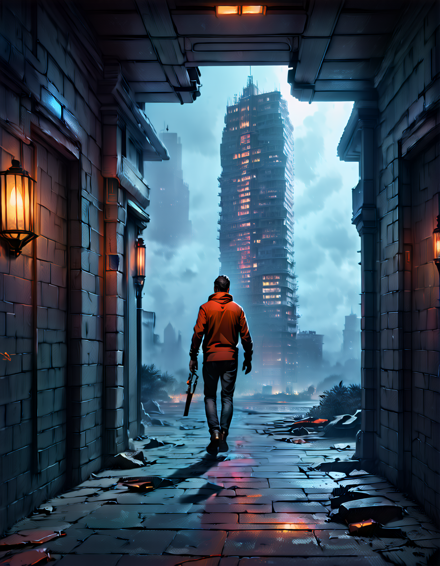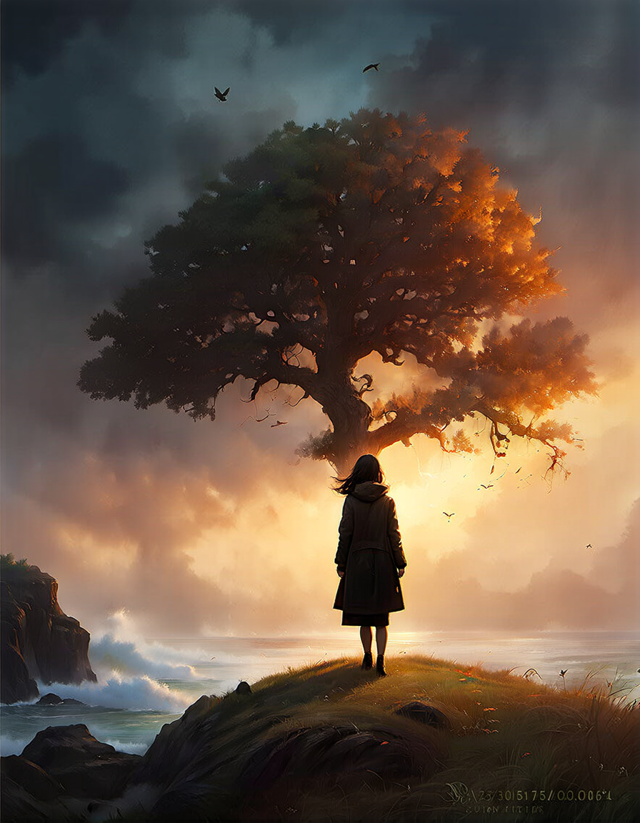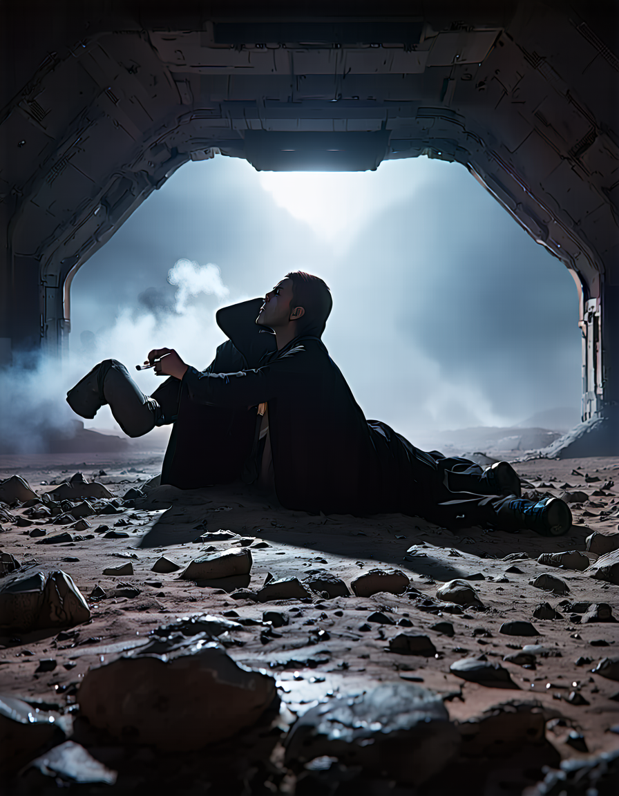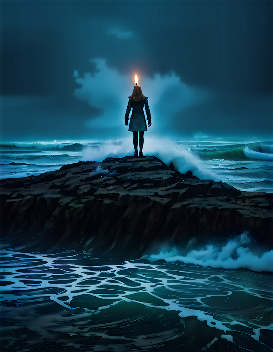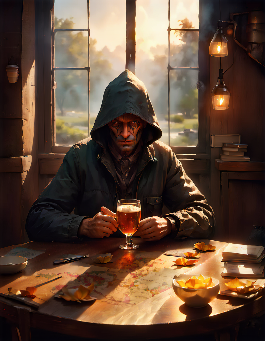 flat even illumination→dramatic chiaroscuro lighting