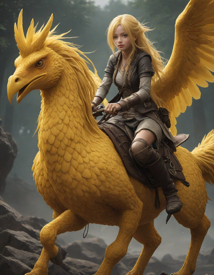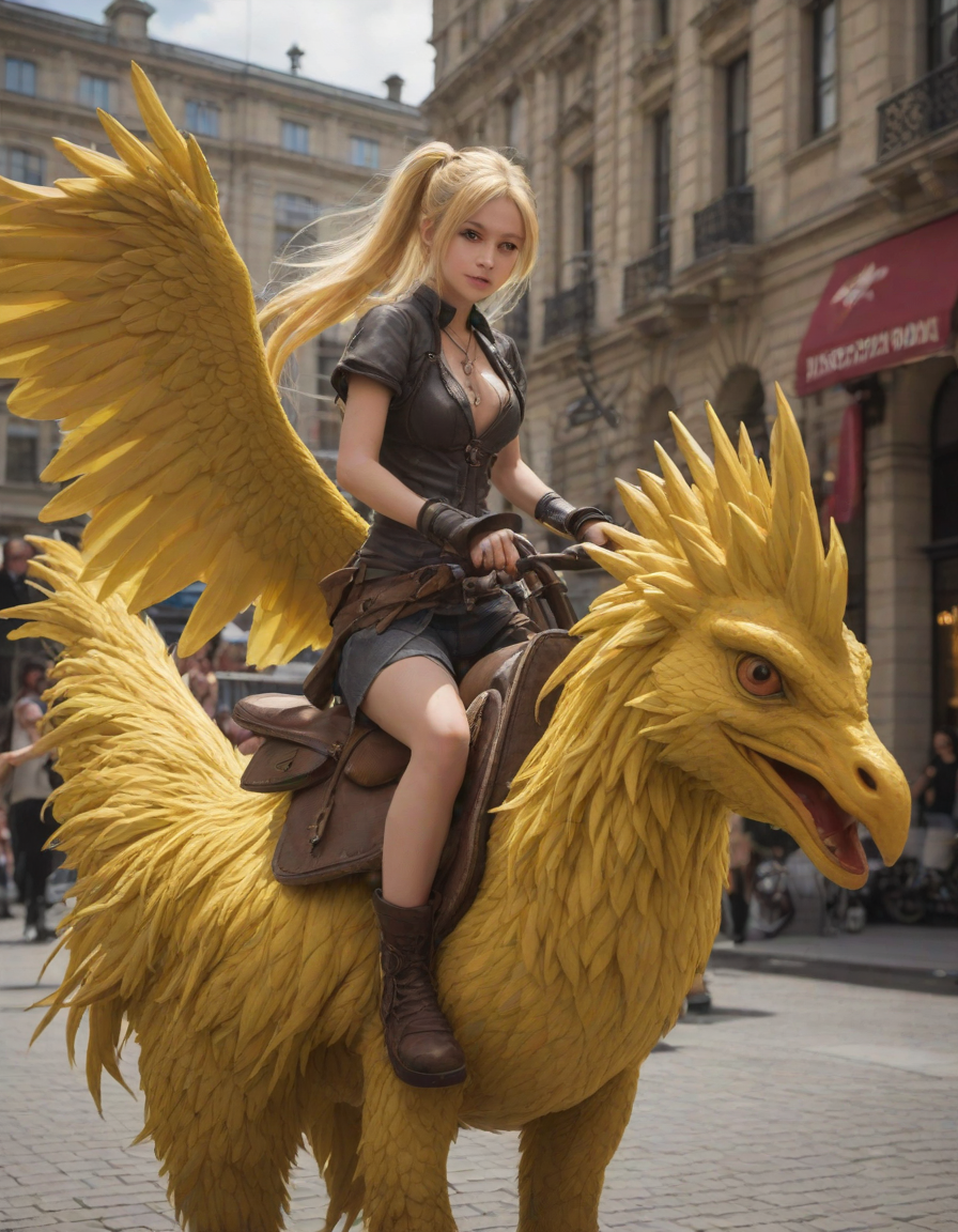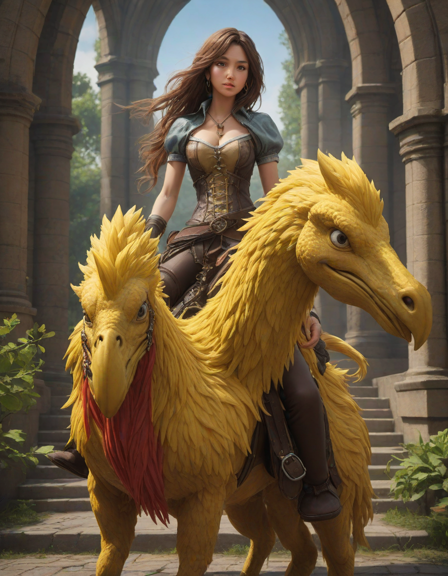 Riding a Chocobo, rowdy, long ... (5 loras merged)