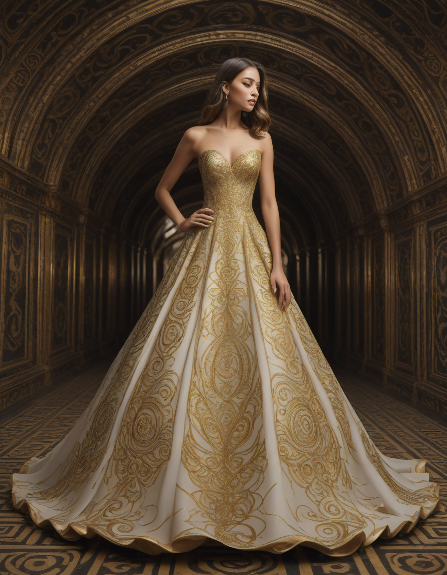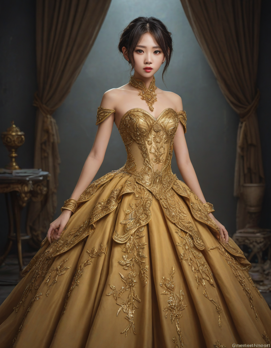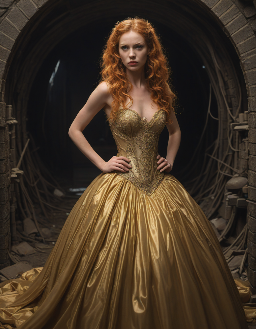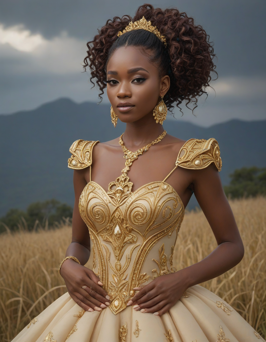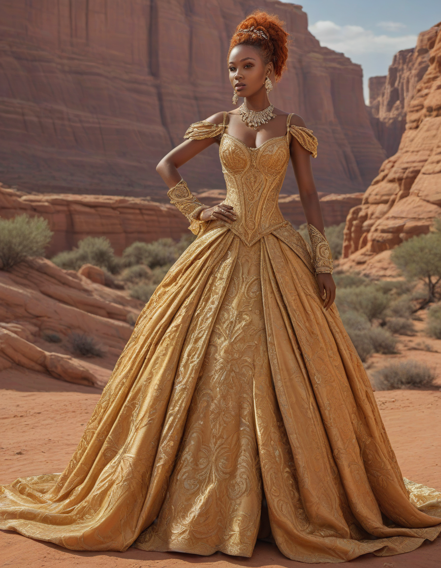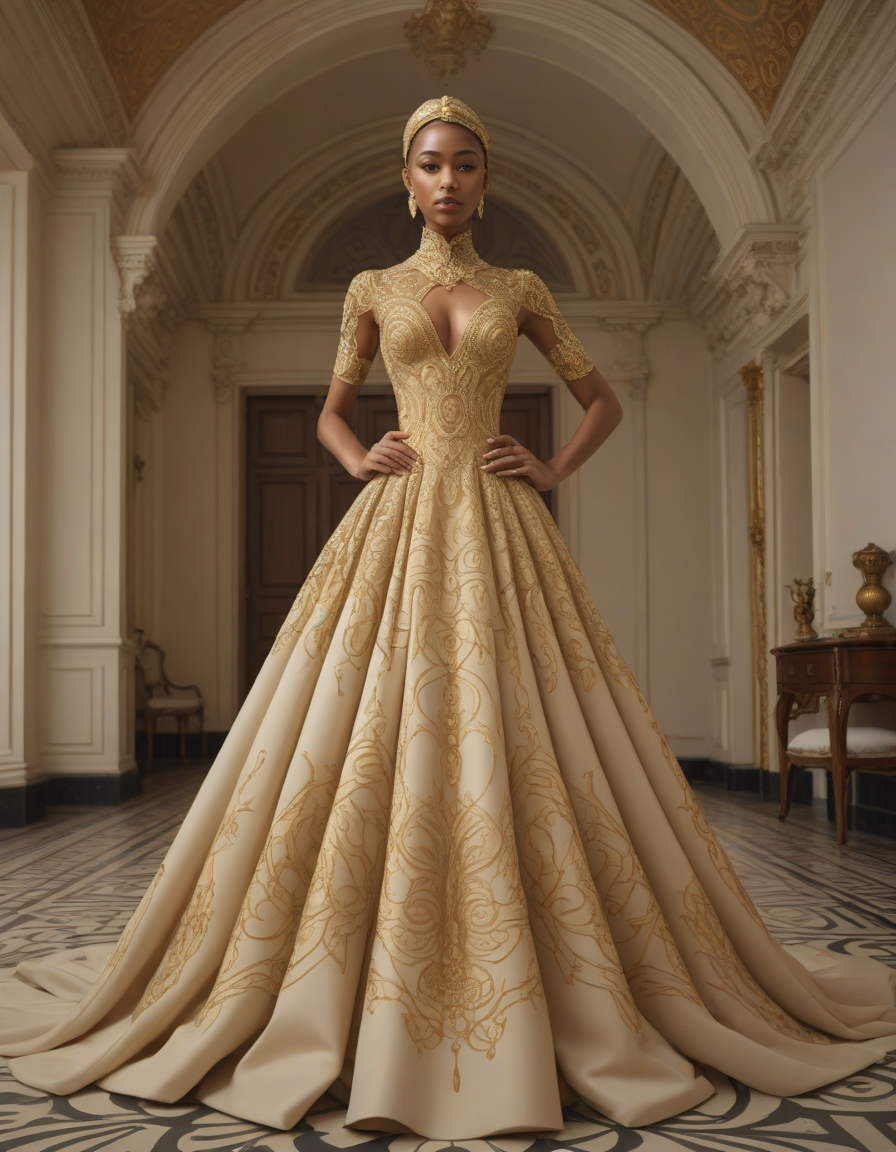 18th-century drab peasant garb → ornate, gold-trimmed ball gown