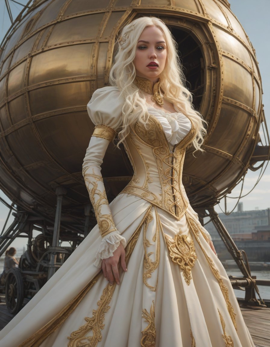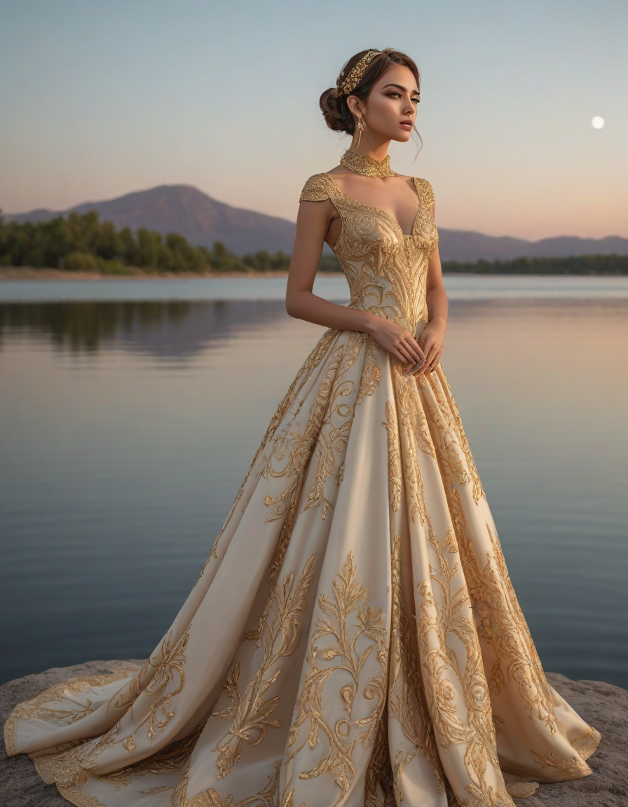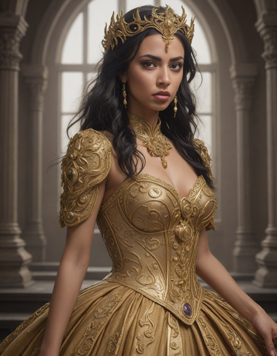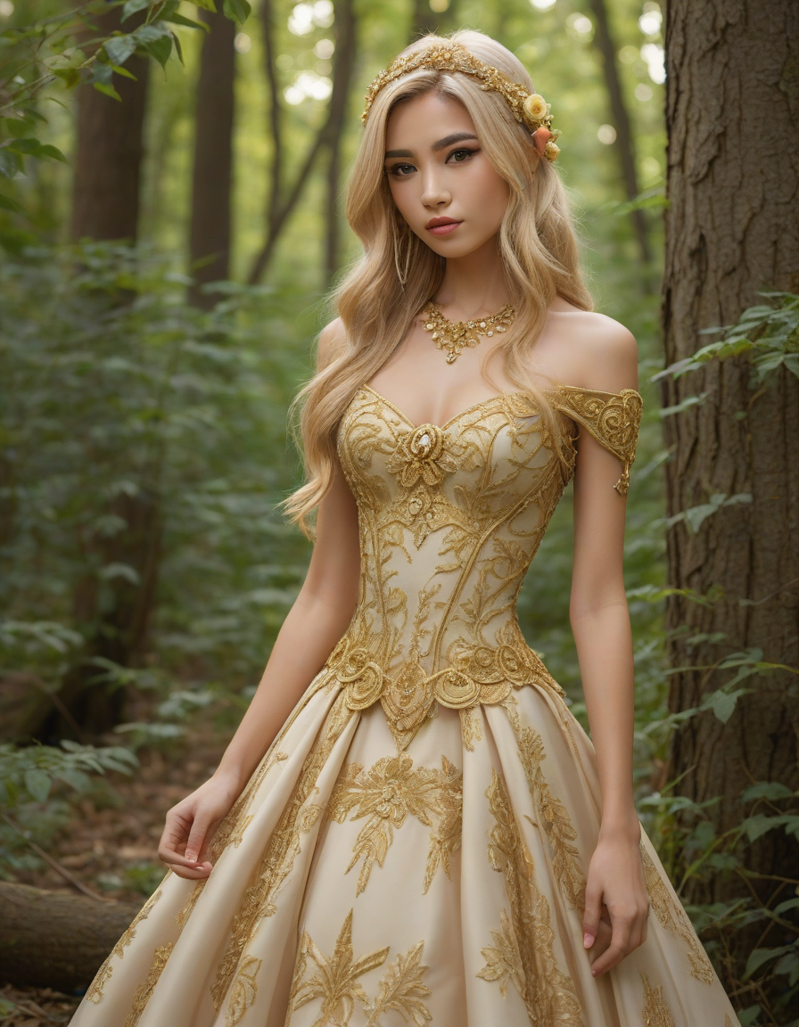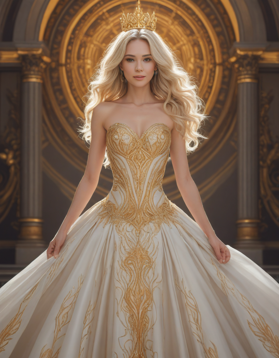 18th-century drab peasant garb → ornate, gold-trimmed ball gown