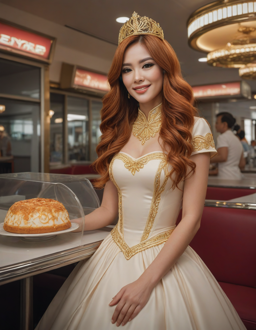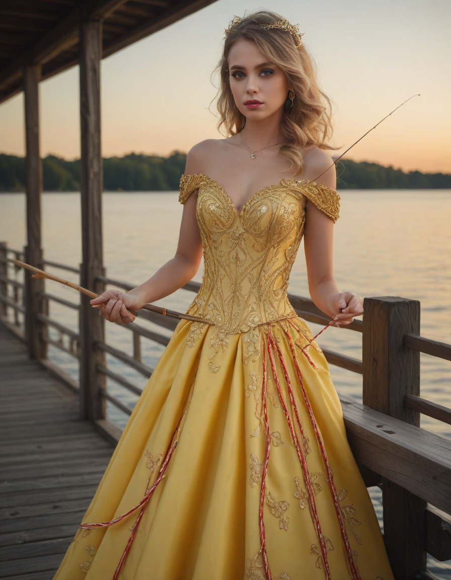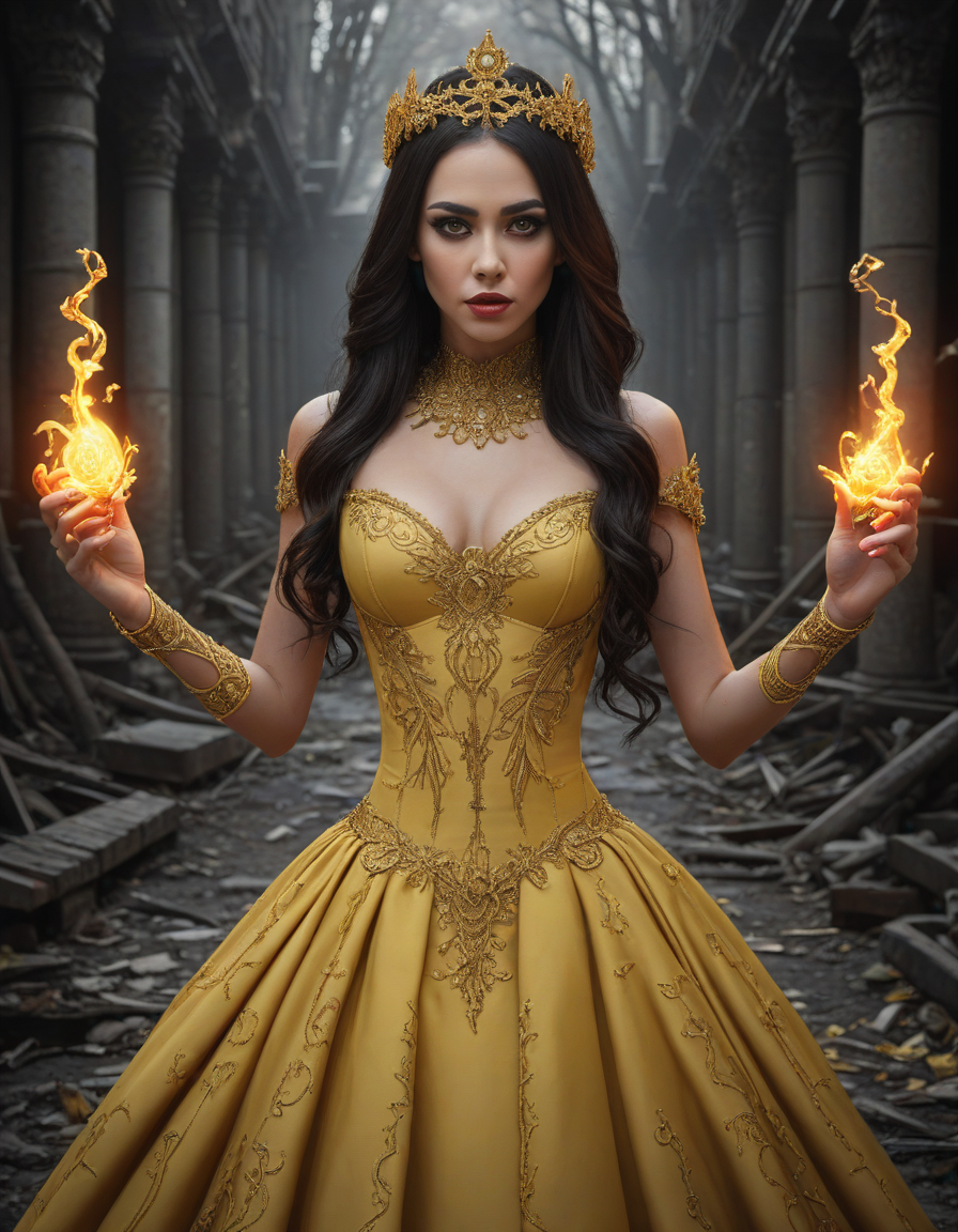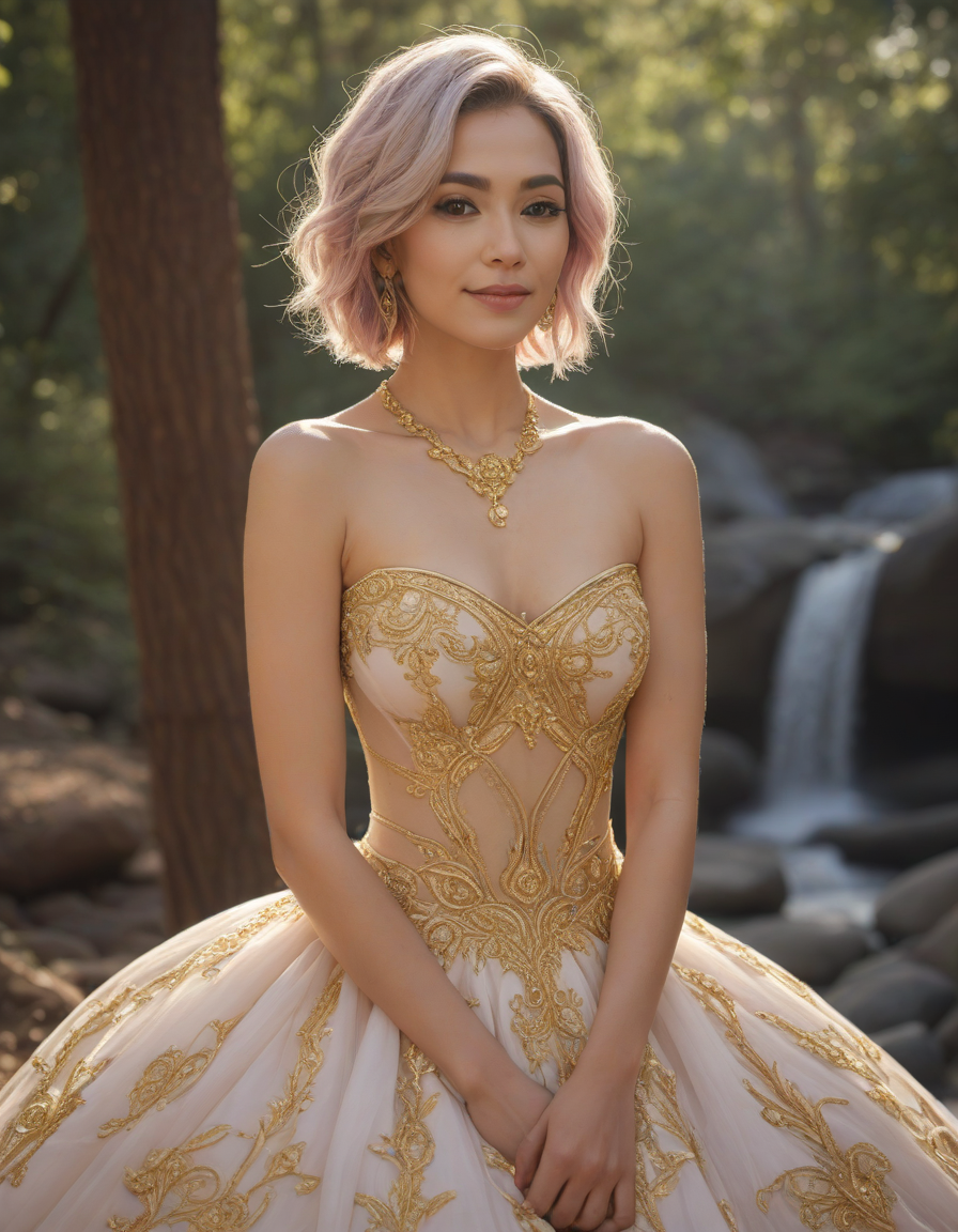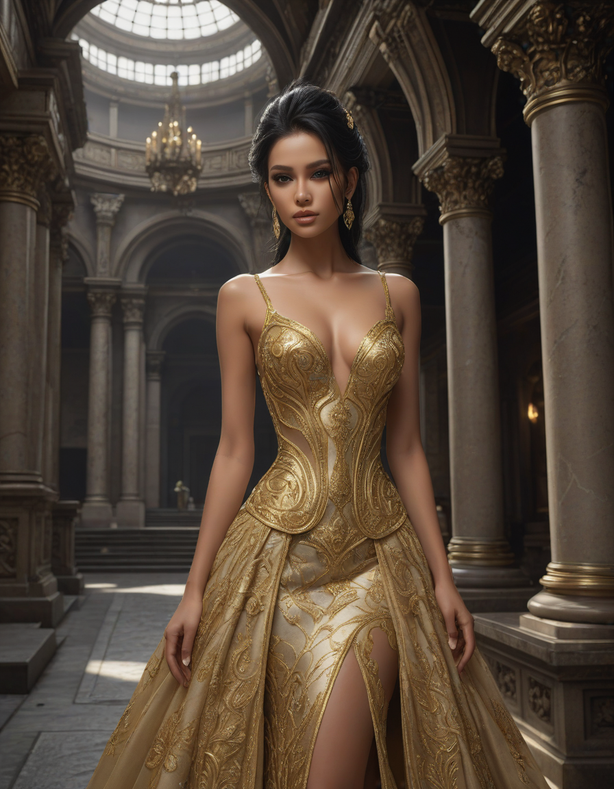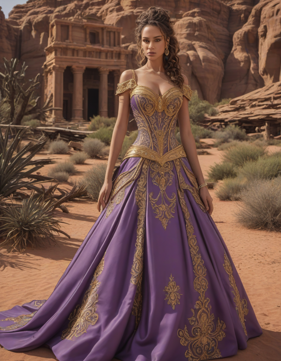 18th-century drab peasant garb → ornate, gold-trimmed ball gown