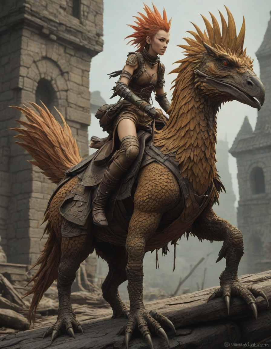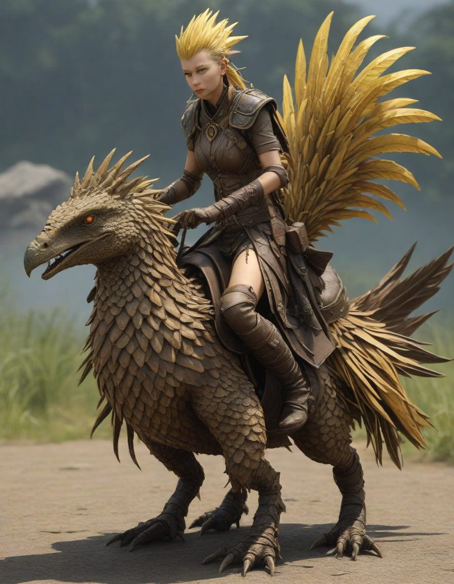 lizardperson, Riding a Chocobo... (4 loras merged)
