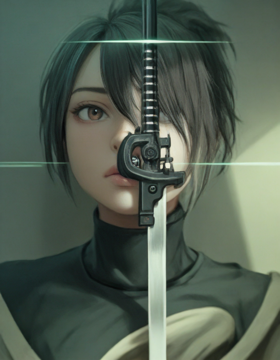 selfie, , holding_weapon, brun... (4 doras merged)